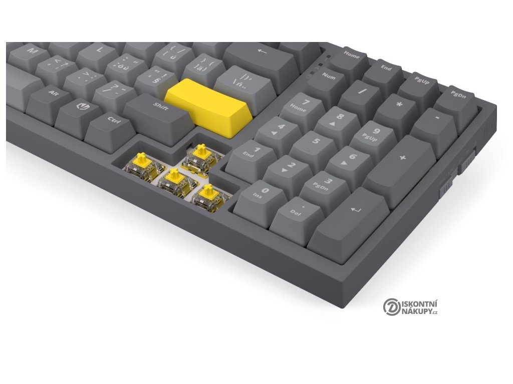 Součástí balení je kabel USB-C na USB, bezdrátový USB přijímač, nástroj na odstraňování kláves, nástroj na odstraňování spínačů, sada šedých kláves Enter a Esc a sada kláves určených pro macOS.