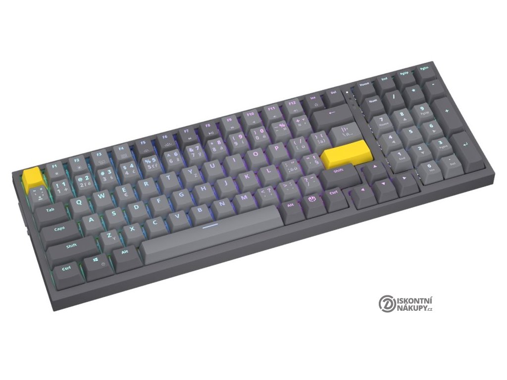 Moderní mechanická klávesnice navržená pro uživatele, kteří hledají dokonalou kombinaci kompaktního designu, pohodlí a technické preciznosti. Díky univerzálnímu rozložení typu 1800 s plnohodnotným numerickým blokem poskytuje veškeré funkce klasické klávesnice, a přitom šetří místo na stole. Kompatibilita se systémy Windows, macOS, Linux i Android umožňuje flexibilní využití napříč zařízeními, přičemž přepínání mezi nimi je otázkou sekund díky podpoře Bluetooth, 2,4GHz donglu a USB připojení. Výkonná baterie vydrží na jedno nabití až 120 hodin provozu, což zajišťuje dlouhodobé používání bez nutnosti častého dobíjení.