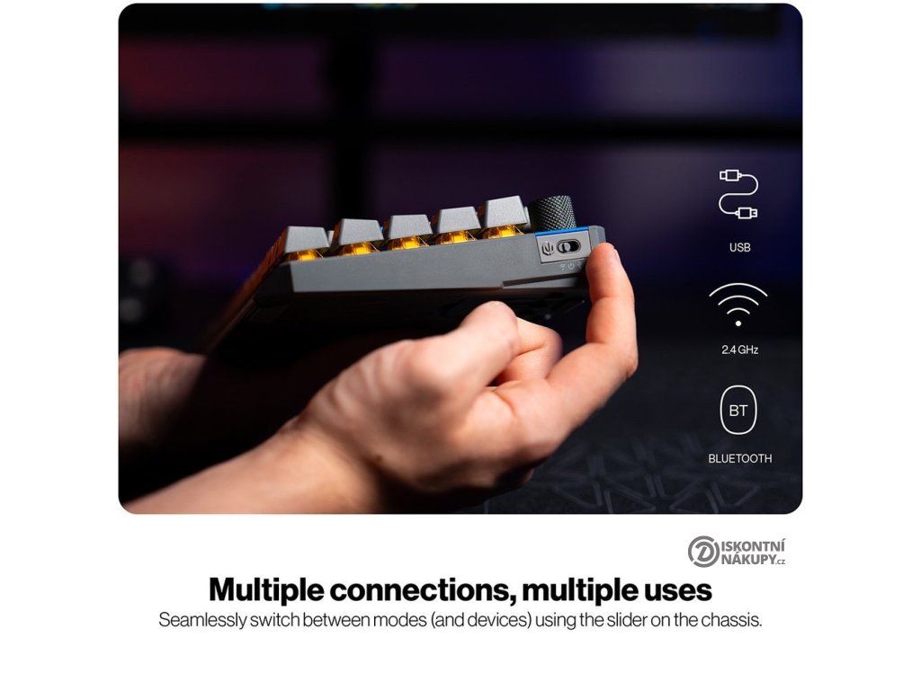 Připojení: USB-C na USB (kabel 1,8 m), Bluetooth, bezdrátové 2,4 GHz