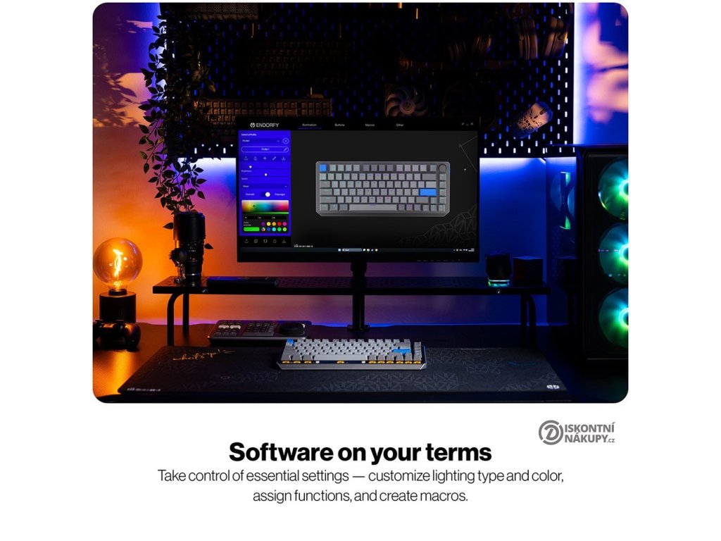 Pokročilá bezdrátová mechanická klávesnice se 75% rozložením a proprietárními spínači Endorfy Yellow.