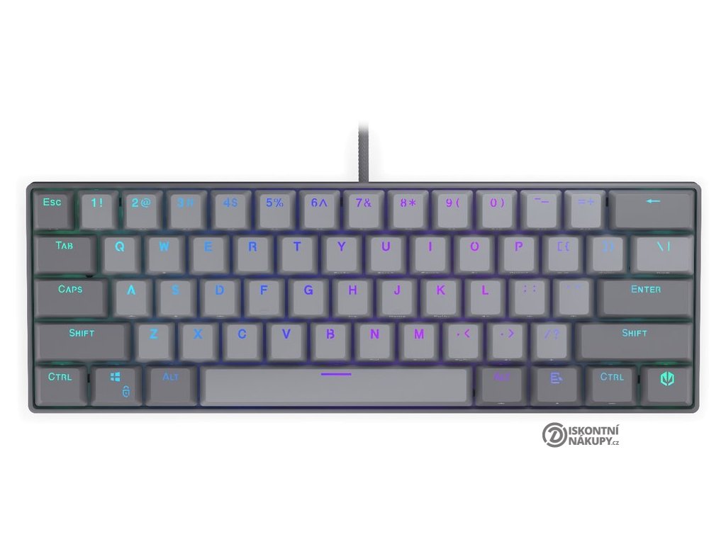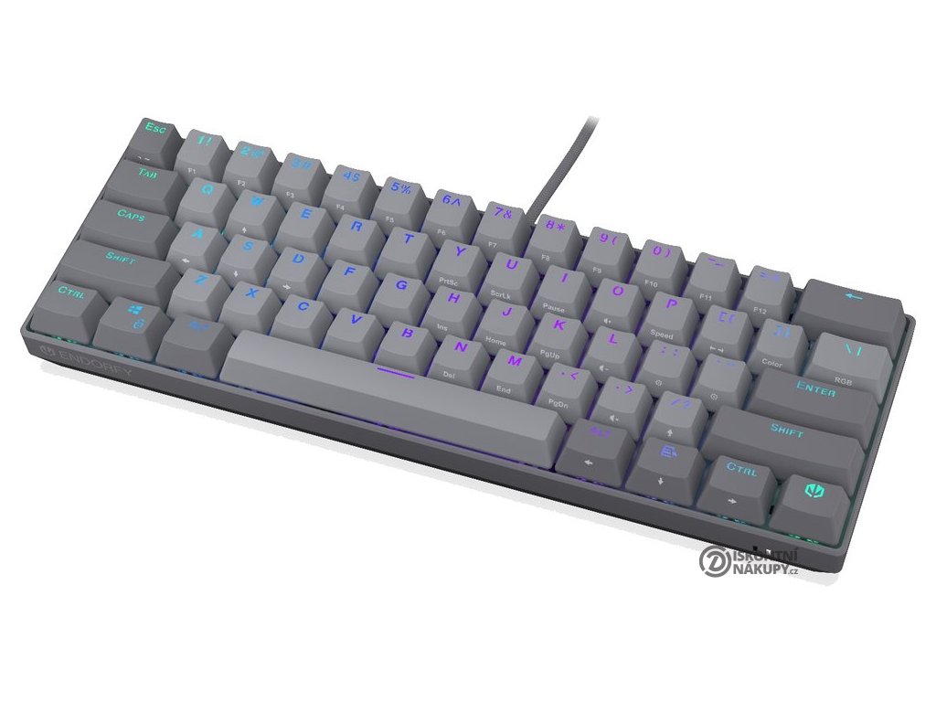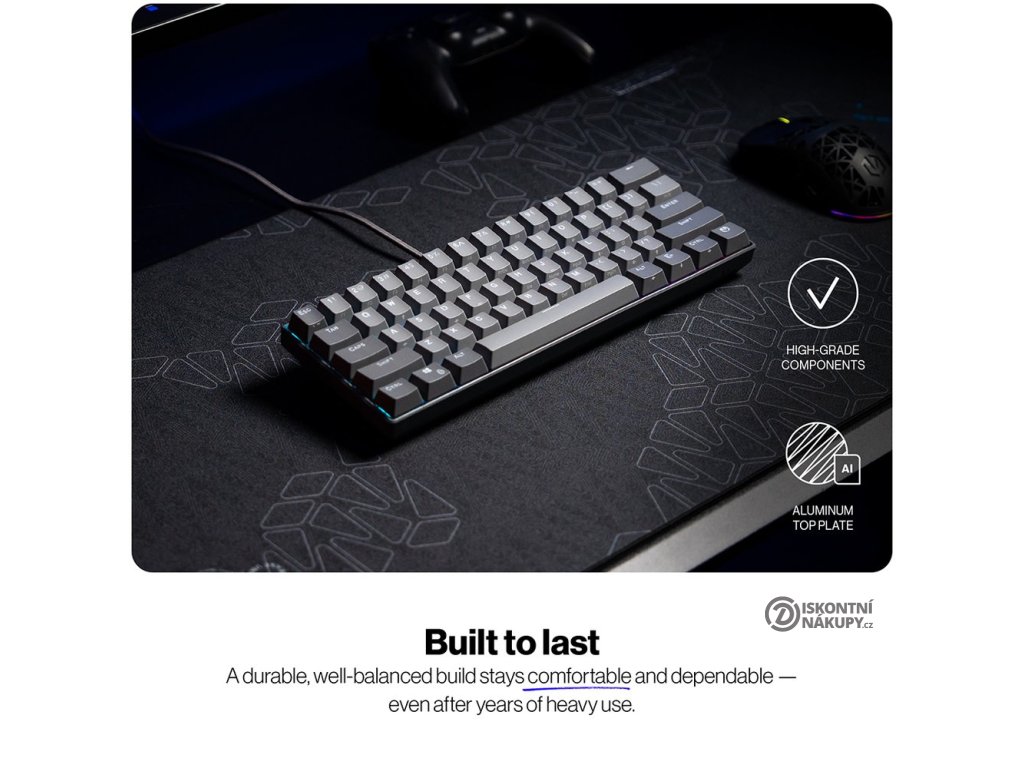- Kompaktní 60klávesové rozložení US ANSI s rozměry 290 × 101 × 47 mm