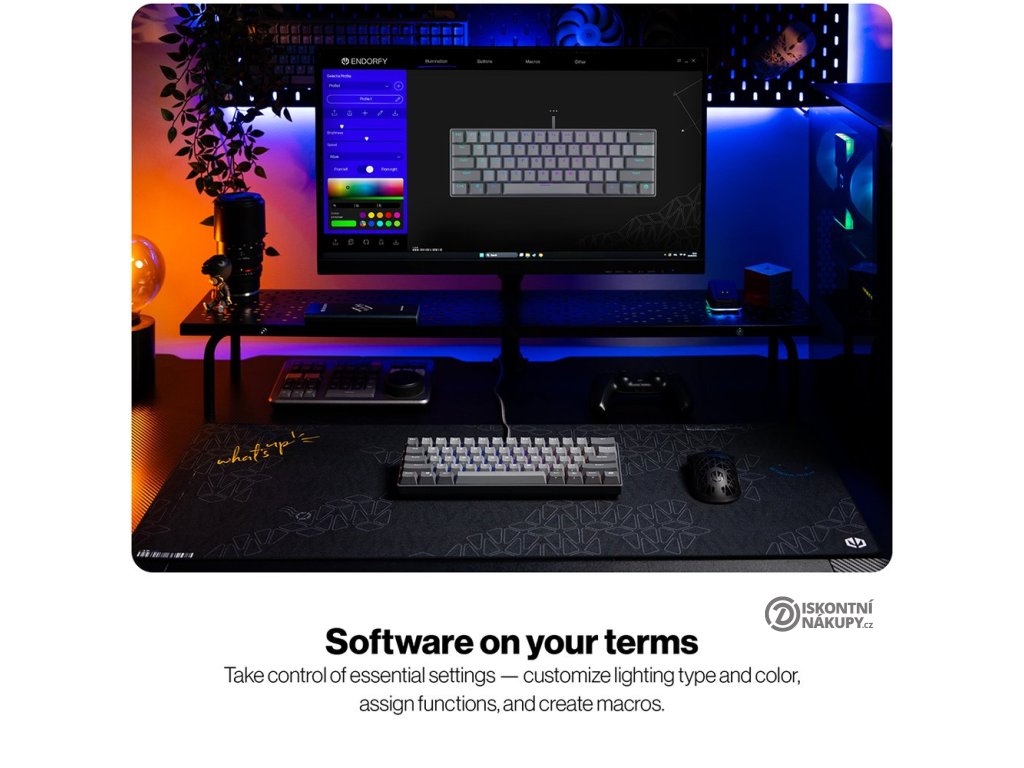- Dedikovaný software pro přemapování kláves, tvorbu maker a nastavení podsvícení