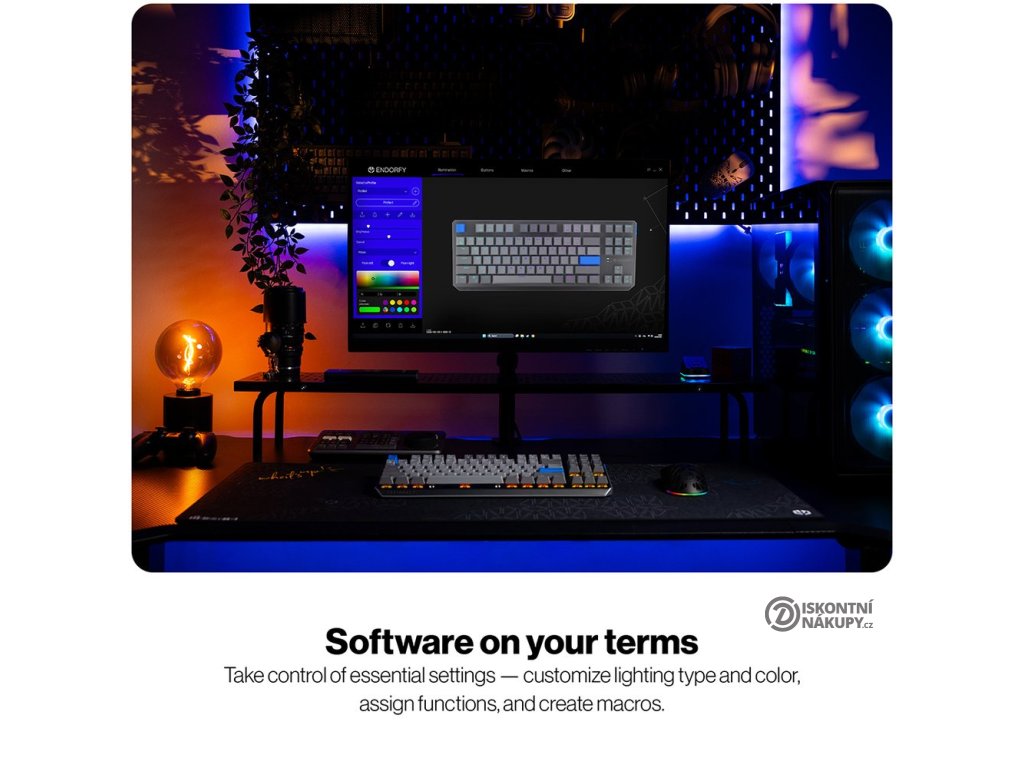 Spínače Endorfy Yellow by Gateron jsou speciálně navrženy pro plynulost a přesnost každého stisku. ARGB podsvícení je stylové na pohled a díky softwaru umožňuje také pokročilé nastavení. Vytvoříte si vlastní světelný „podpis“ a rozzáříte svůj herní kout. Klávesnice Endorfy Thock V2 Wireless TKL vám dá přesně to, co potřebujete pro dominanci na herní scéně.