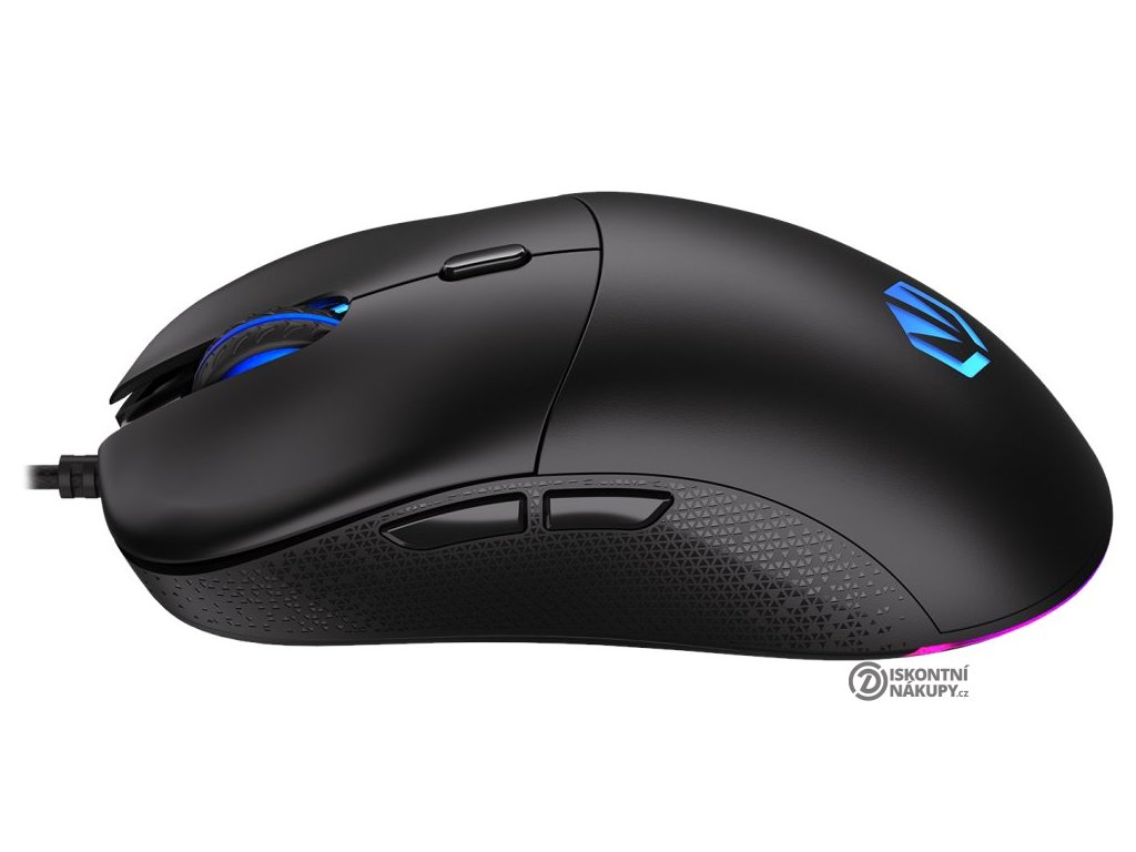 Lehká herní myš disponující 6 programovatelnými tlačítky a vysoce přesným optickým senzorem Pixart PMW3325 s rozlišením až 8000 dpi. Textura bočních stran zajišťuje pevnější uchopení myši a tím zlepšuje celkovou ovladatelnost. Herní design doplňuje adresovatelné RGB podsvícení. Kvalitní spínače Kailh GM 4.0 vydrží více než 60 milionů kliků. Připojení je realizováno skrze opletený USB kabel o délce 1,8 m.