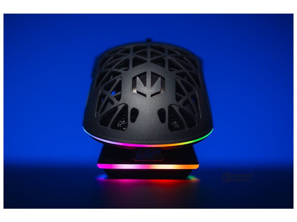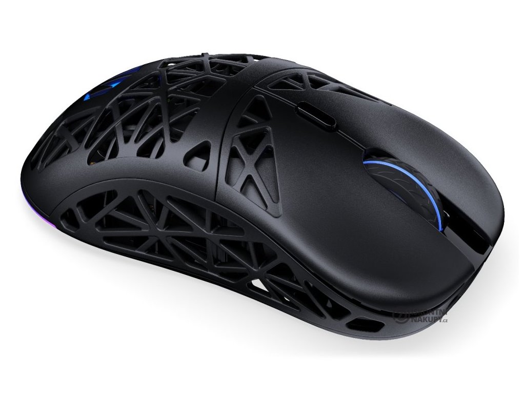Ultra lehká bezdrátová herní myš disponující 6 programovatelnými tlačítky a vysoce přesným optickým senzorem Pixart PAW3395 s nastavitelným rozlišením až 26 000 DPI. Herní design doplňuje adresovatelné RGB podsvícení. Kvalitní spínače Kailh GM 8.0 vydrží více než 80 milionů kliků. Napájení zajišťuje vestavěná dobíjecí baterie s kapacitou 500 mAh. Myš lze jednoduše nabíjet pomocí dokovací stanice. Připojení lze jednoduše realizovat skrze USB kabel, technologii 2,4 GHz a miniaturní USB přijímač nebo pomocí Bluetooth.