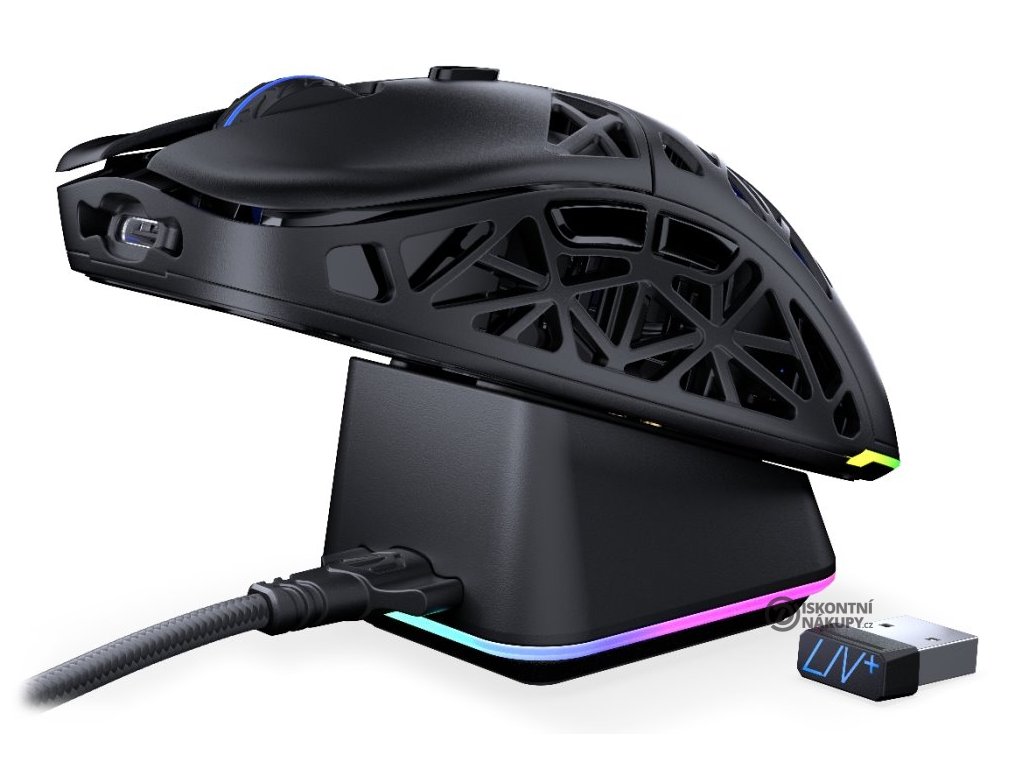 Endorfy myš LIV Plus Wireless / PAW3395 / Khail GM 8.0 / bezdrátová / ultralehká / dockovací stanice / černá EY6A016