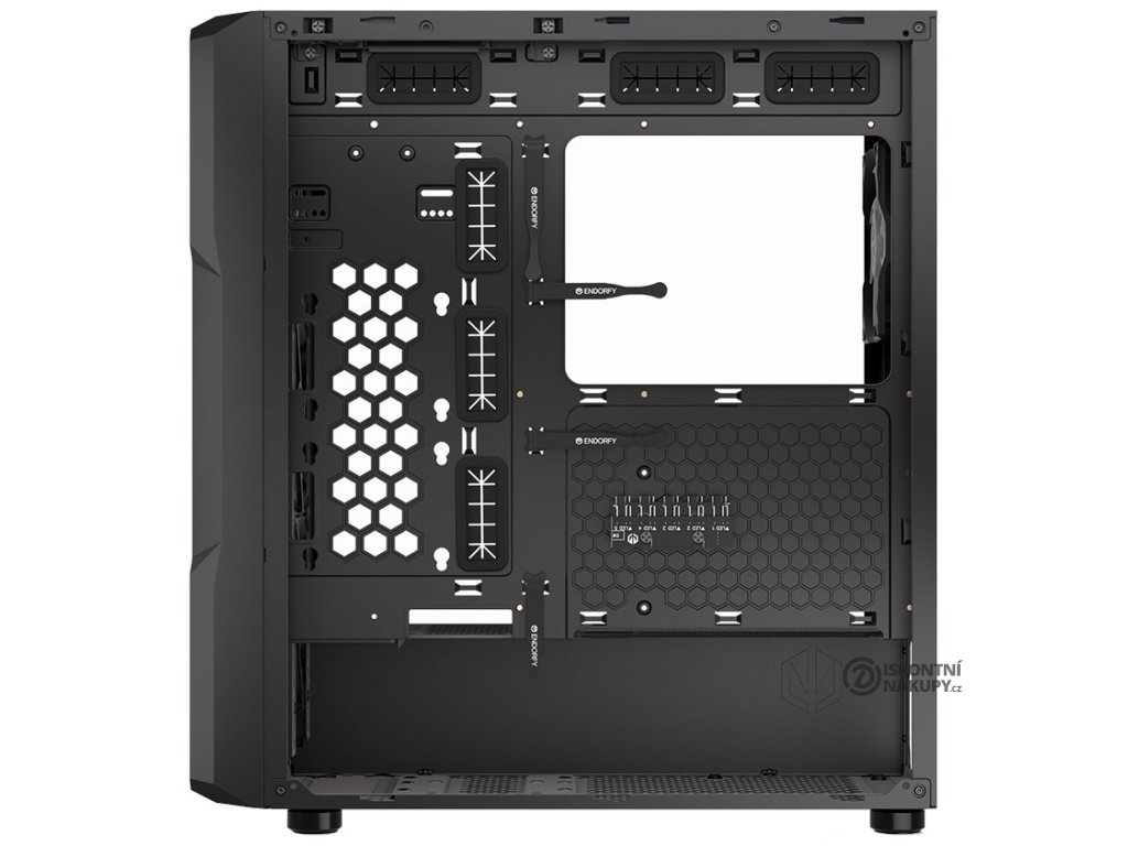 Endorfy Regnum 400 ARGBSkříň formátu Middle Tower s průhlednou bočnicí z tvrzeného skla nabízí dvě 2,5" pozice pro SSD disky a dvě 3,5" pozice pro pevné disky. Na horní části se nachází dva USB 3.0 porty, sluchátkový výstup a audio vstup pro mikrofon. Vybavena je čtyřmi 120 mm ventilátory s ARGB podsvícením, které spolu s perforovaným čelním panelem zajišťují dostatečné proudění vzduchu. Důmyslné řešení umožňuje pohodlné umístění až 360 mm dlouhého výměníku vodního chlazení na přední straně. Ve skříni je dostatek prostoru pro chladič CPU do výšky až 162 mm a grafickou kartu o délce až 370 mm. Dodávána je bez zdroje. Součástí je také interní ARGB ovladač a sada prachových filtrů.