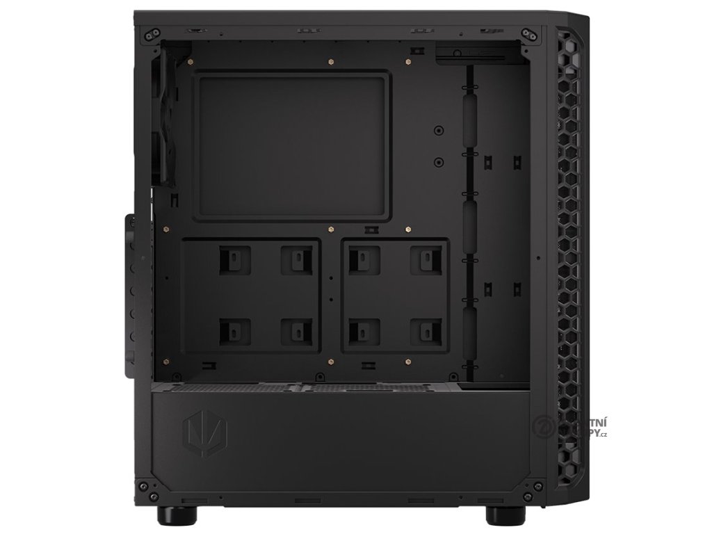 Endorfy Signum 300 SolidSkříň formátu Middle Tower nabízí dvě 2,5" pozice pro SSD disky a dvě 3,5" pozice pro pevné disky. Na horní části se nachází dva USB 3.0 porty, sluchátkový výstup a audio vstup pro mikrofon. Vybavena je jedním 120 mm ventilátorem, který spolu s perforovaným čelním panelem zajišťuje dostatečné proudění vzduchu. Důmyslné řešení umožňuje pohodlné umístění až 360 mm dlouhého výměníku vodního chlazení na přední straně. Ve skříni je dostatek prostoru pro chladič CPU do výšky až 161 mm a grafickou kartu o délce až 350 mm. Dodávána je bez zdroje. Součástí je také sada prachových filtrů.