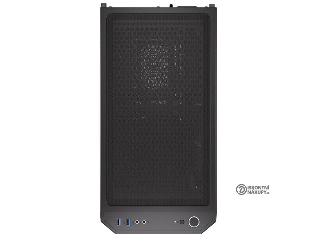 Konektory na horním panelu: 2x USB 3.0, 1x sluchátkový výstup, 1x vstup pro mikrofon