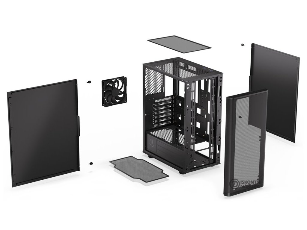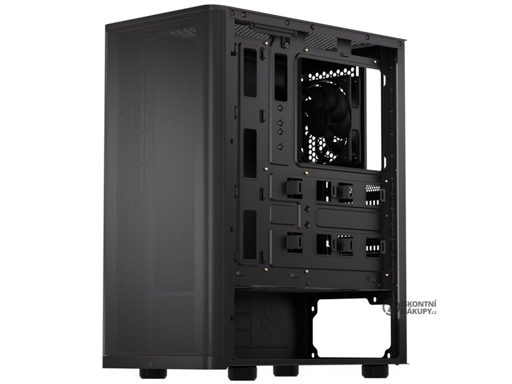 Endorfy Ventum 200 SolidSkříň formátu Middle Tower nabízí dvě 2,5" pozice pro SSD disky a jednu 3,5" pozici pro pevný disk. Na horní části se nachází dva USB 3.0 porty, sluchátkový výstup a audio vstup pro mikrofon. Vybavena je jedním 120 mm ventilátorem, který spolu s perforovaným čelním panelem zajišťuje dostatečné proudění vzduchu. Důmyslné řešení umožňuje pohodlné umístění až 360 mm dlouhého výměníku vodního chlazení na přední straně. Ve skříni je dostatek prostoru pro chladič CPU do výšky až 161 mm a grafickou kartu o délce až 315 mm. Dodávána je bez zdroje. Součástí je také sada prachových filtrů.