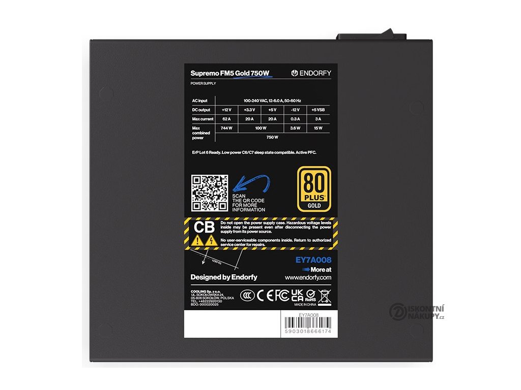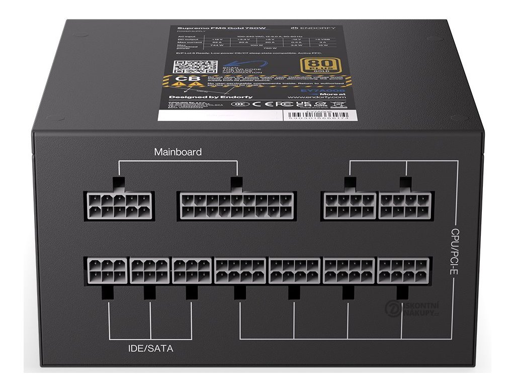 Endorfy Supremo FM5 Gold 750 WNapájecí zdroj o výkonu 750 W je osazen tichým, 120 mm velkým ventilátorem. Modulární kabeláž ušetří cenné místo ve skříni. Účinnost zdroje je 80PLUS Gold.