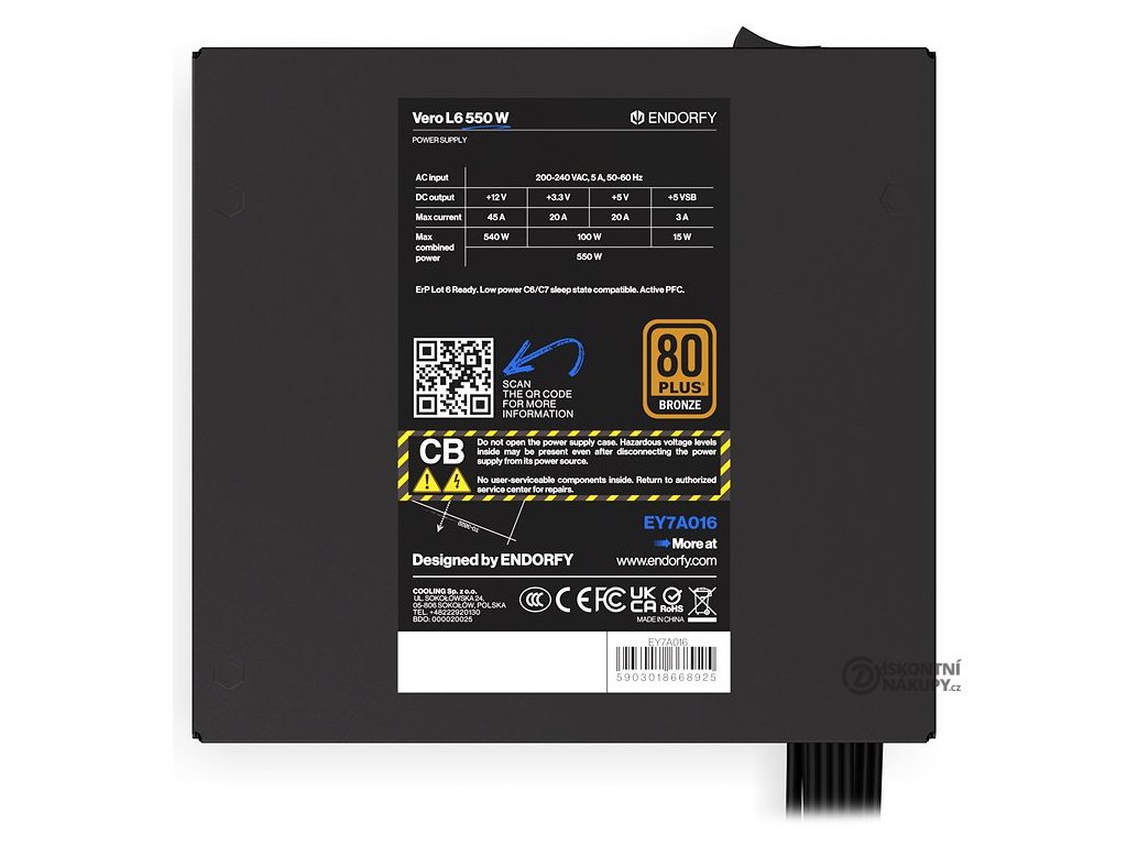 Endorfy zdroj Vero L6 Bronze 550W / ATX3.1 / 120mm / 80 Plus Bronze EY7A016