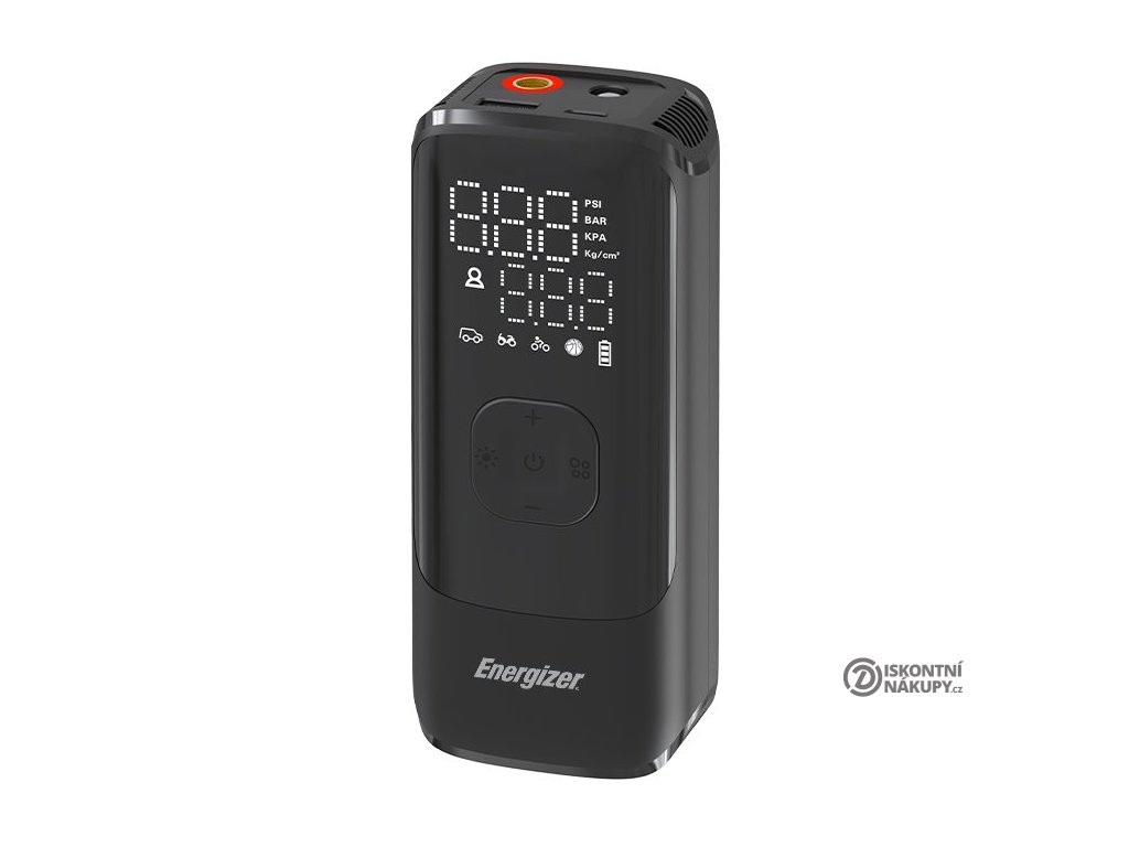 Energizer PAC4000Přenosný vzduchový kompresor a powerbanka s kapacitou 2000 mAh v jednom. Kompresor nabízí 5 provozních režimů (auto/kolo/motocykl/míč/vlastní), což zajišťuje snadnou obsluhu, která dokáže nafouknout pneumatiku na základě přednastavené hodnoty tlaku. Disponuje také třemi typy trysek, které dokonale fungují s tlakem až 150 PSI pro nafukování různých typů pneumatik. Digitální displej přehledně a rychle zobrazuje aktuální tlak, přednastavený tlak a volbu režimu. Potěší také LED svítilna, která je ideální pro vnitřní i venkovní osvětlení. Funkce automatického vypnutí automaticky zastaví huštění, jakmile tlak v pneumatice dosáhne nastavené hodnoty, aby se zabránilo přehuštění. Díky své kompaktnosti je vhodná na cesty.