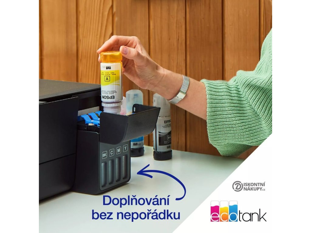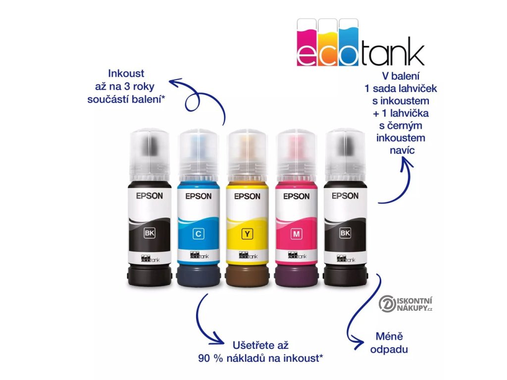 Tiskárna je dodávána se sadou inkoustů pro naplnění inkoustových tanků, které nabízí výdrž až 6500 stran barevně a 8100 stran černobíle.