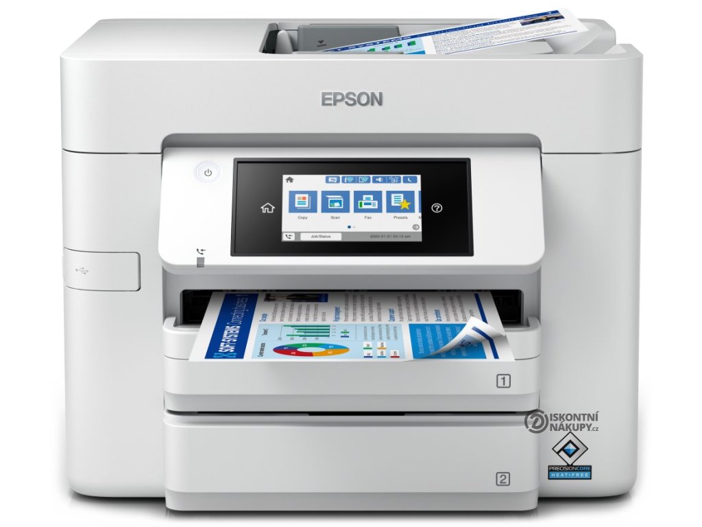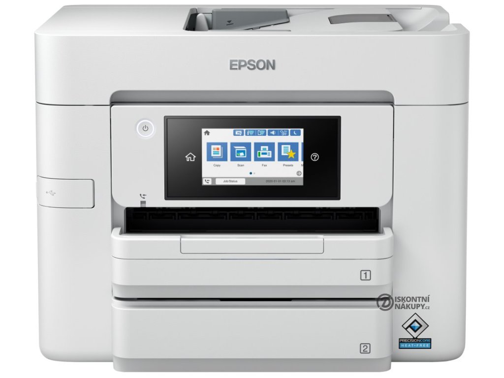 Epson WorkForce Pro WF-C4810DTWFMultifunkční barevná inkoustová tiskárna formátu A4 nabízející funkce tisku, skeneru, kopírky a faxu. Rozlišení tisku je až 4800 x 2400 dpi, rozlišení skeneru až 1200 x 1200 dpi a rychlost tisku až 36 stran za minutu černobíle a 22 stran za minutu barevně. Potěší také automatický oboustranný tisk, dva zásobníky na papír s celkovou kapacitou 500 listů či automatický podavač dokumentů s kapacitou 50 listů. Tiskárna také nabízí snadné přímé ovládání prostřednictvím čelního panelu s dotykovým LCD displejem o úhlopříčce 4,29". Připojení lze jednoduše realizovat jak drátově skrze USB či síťový Ethernet port, tak bezdrátově pomocí technologie Wi-Fi. Pro rychlý tisk je přítomen USB host port. Samozřejmostí je pak možnost bezdrátového tisku z mobilních zařízení prostřednictvím Apple AirPrint či Epson Connect.