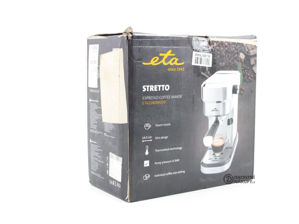 Espresso ETA Stretto 2180 90000 nerez ..Odzkoušeno - Vráceno ..Oděrky a důlek ..Chybí návod ..Záruka 12 měsíců