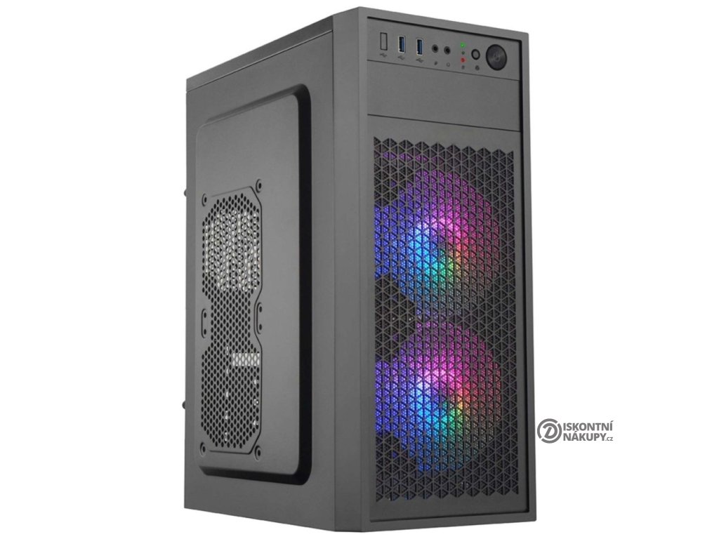 Počítačová skříň v provedení Middle Tower nabízí dvě 2,5" a dvě 3,5" pozice pro pevné a SSD disky. Na předním panelu jsou umístěny dva USB 3.0 porty, sluchátkový výstup a vstup pro mikrofon. Skříň je osazena dvěma 120mm ARGB ventilátory na přední straně. Potěší také možnost osazení dalšími až třemi ventilátory. Ve skříni je dostatek prostoru pro chladič CPU do výšky až 110 mm a grafickou kartu o délce až 260 mm. Skříň je dodávána bez zdroje.