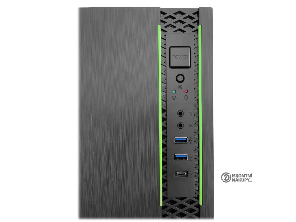 Konektory na předním panelu: 2× USB 3.0, 1× USB-C, 1× sluchátkový výstup, 1× vstup pro mikrofon