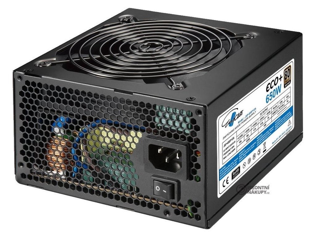 Eurocase Eco+ 650 WNapájecí zdroj je osazen tichým 120 mm ventilátorem. Účinnost zdroje splňuje certifikaci 80PLUS Bronze.