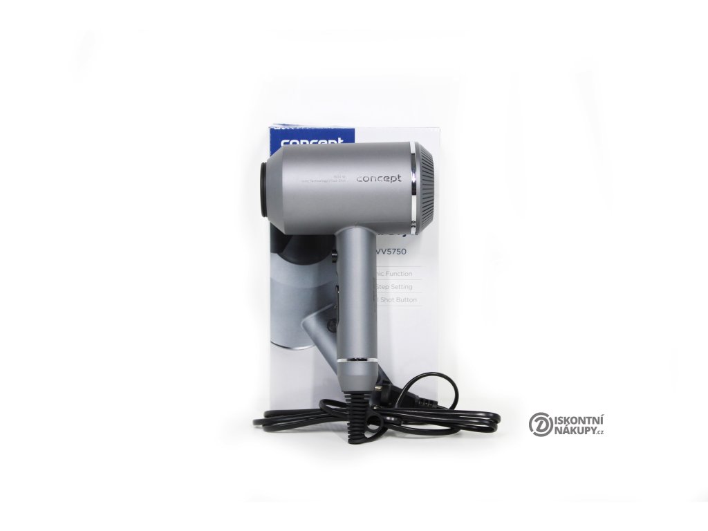 Fén na vlasy Concept VV5750 s příkonem 1600 W se postará o rychlé a šetrné vysoušení vašich vlasů. Nabízí výběr ze tří stupňů výkonu s možností nastavení 3 úrovní teploty a 2 rychlostí proudění vzduchu. Je vybaven koncentrátorem, který usměrní proud vzduchu do požadovaného místa pro dokonalou finální úpravu a funkcí COOL SHOT, která váš účes prudkým ochlazením vzduchu zafixuje.
