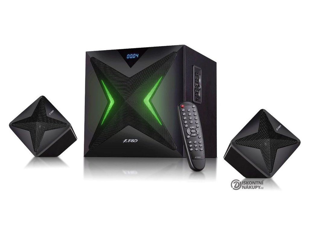 FENDA F&D repro F550X/ 2.1/ 56W/ černé/ BT4.0/ NFC/ FM rádio/ USB/SD přehrávání/ dálkové ovládání F550X