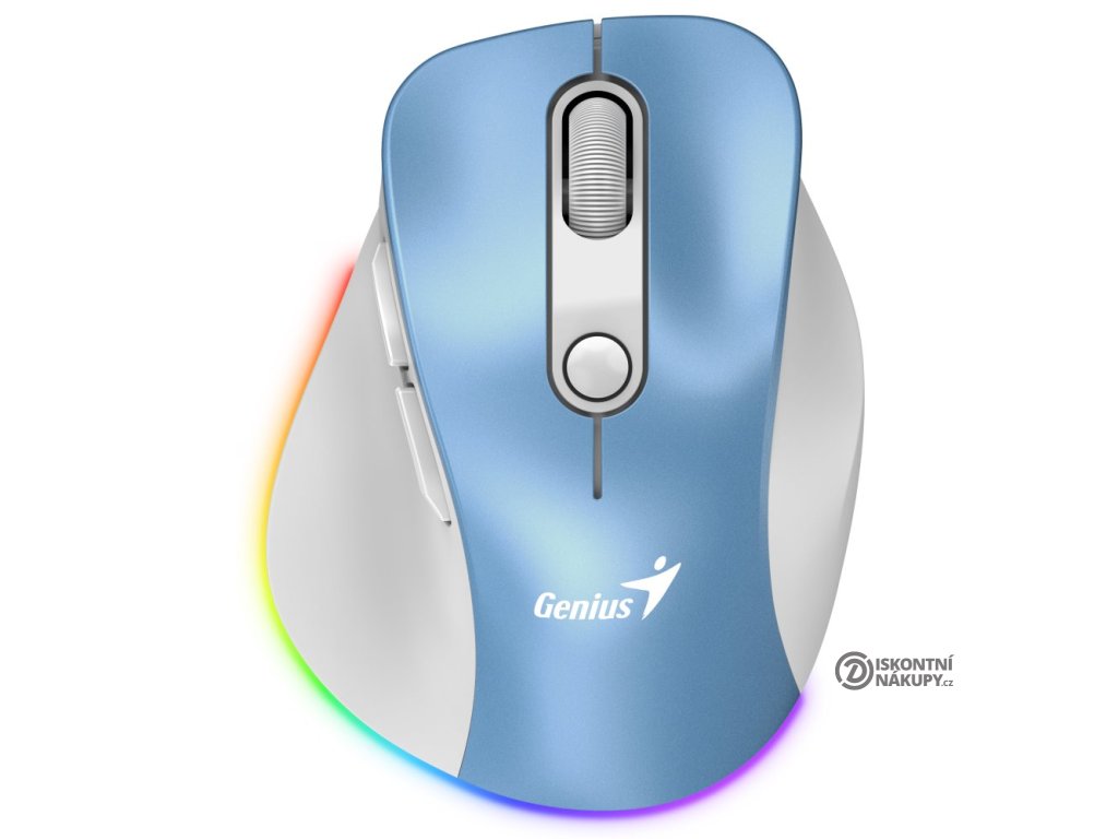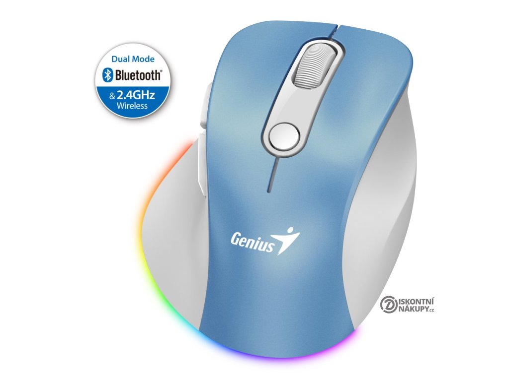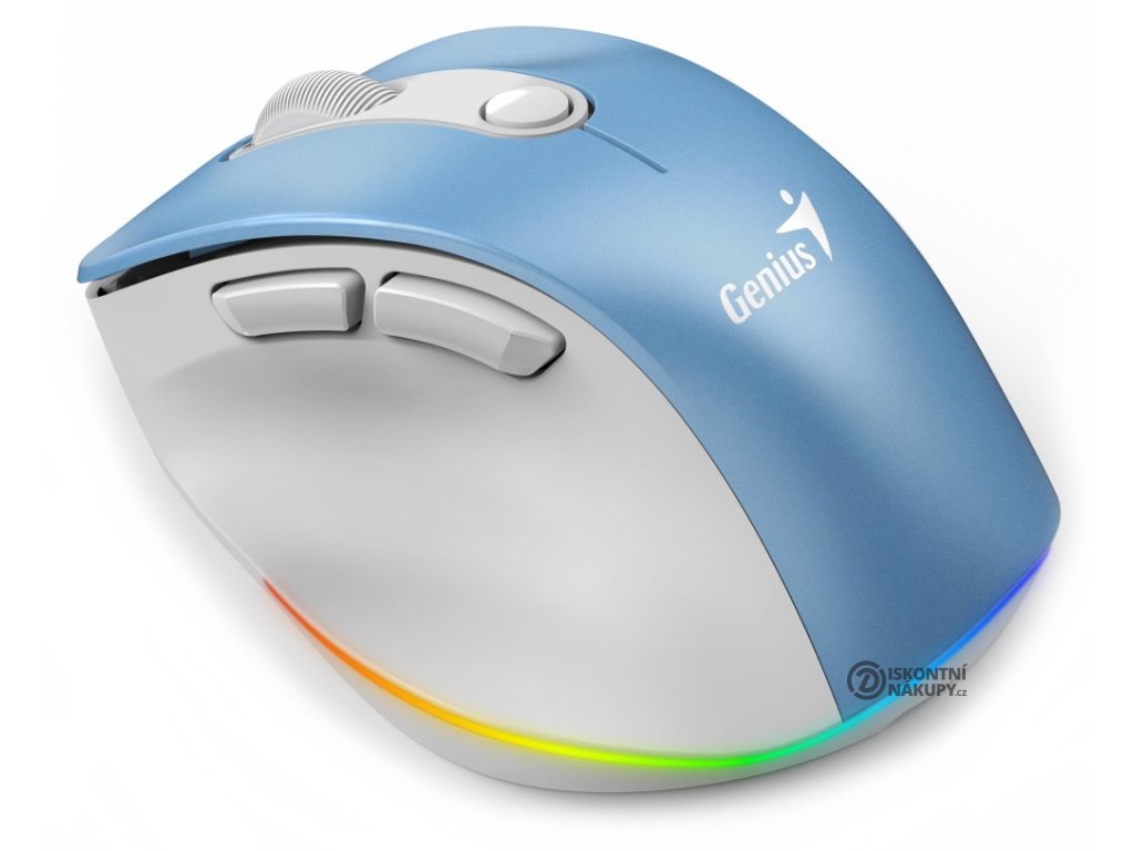 GENIUS Ergo 9000S Pro Light Blue/ duální Bluetooth + 2,4GHz/ 2400 dpi/ bezdrátová/ 6tlačítková/ dobíjecí/ RGB/ modrobílá 31030039401