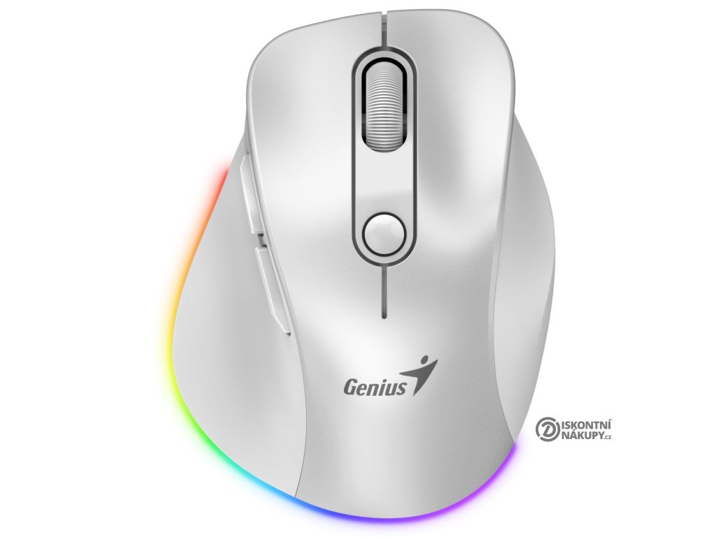 GENIUS Ergo 9000S Pro Pearl White/ duální Bluetooth + 2,4GHz/ 2400 dpi/ bezdrátová/ 6tlačítková/ dobíjecí/ RGB/ bílá 31030039400