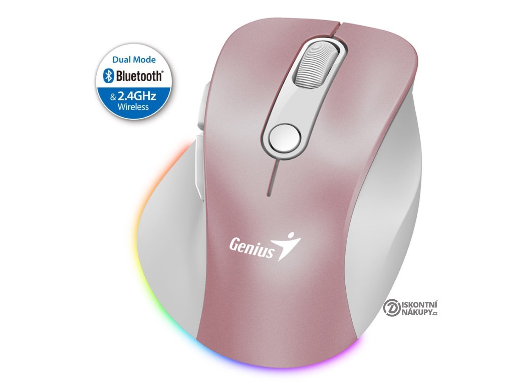 GENIUS Ergo 9000S Pro Pink/ duální Bluetooth + 2,4GHz/ 2400 dpi/ bezdrátová/ 6tlačítková/ dobíjecí/ RGB/ růžová 31030039403
