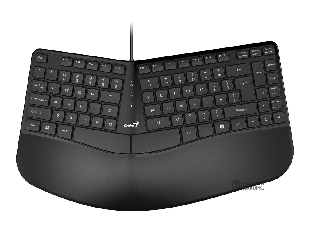 Genius Ergo KB-700Ergonomická klávesnice zajišťuje optimální polohu vašich rukou a přispívá ke snížení tlaku na oblast zápěstí. Předností je samostatná klávesa pro vyvolání AI asistenta Windows Copilot a opěrka dlaní. K připojení klávesnice slouží 1,5 m dlouhý kabel zakončený USB konektorem.