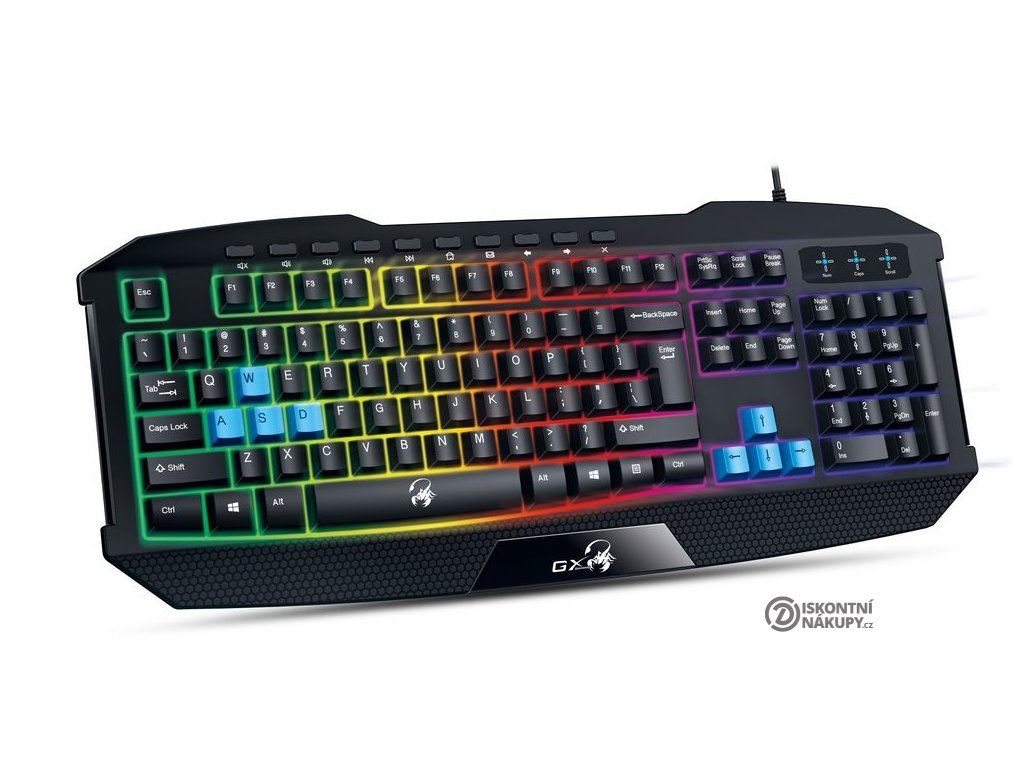 Originální herní klávesnice Genius GX Gaming, která hraje všemi barvami a je vhodná pro ovládání širokého spektra počítačových titulů i jako zařízení k domácím multimediálním PC. Díky podsvícení je usnadněna orientace na klávesnici, a to zejména ve tmě.