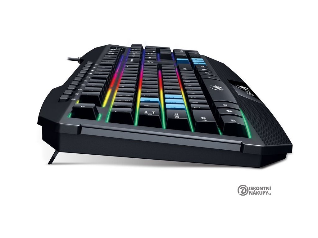 Herní klávesnice s robustní konstrukcí nabízí duhové podsvícení a povrch odolný proti polití. Rychlé ovládání bez vypadnutí ze hry nebo rozdělané práce zajišťuje 10 multimediálních kláves, například pro přímé ovládání hlasitosti. Připojení lze snadno realizovat pomocí USB kabelu.