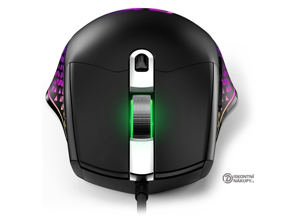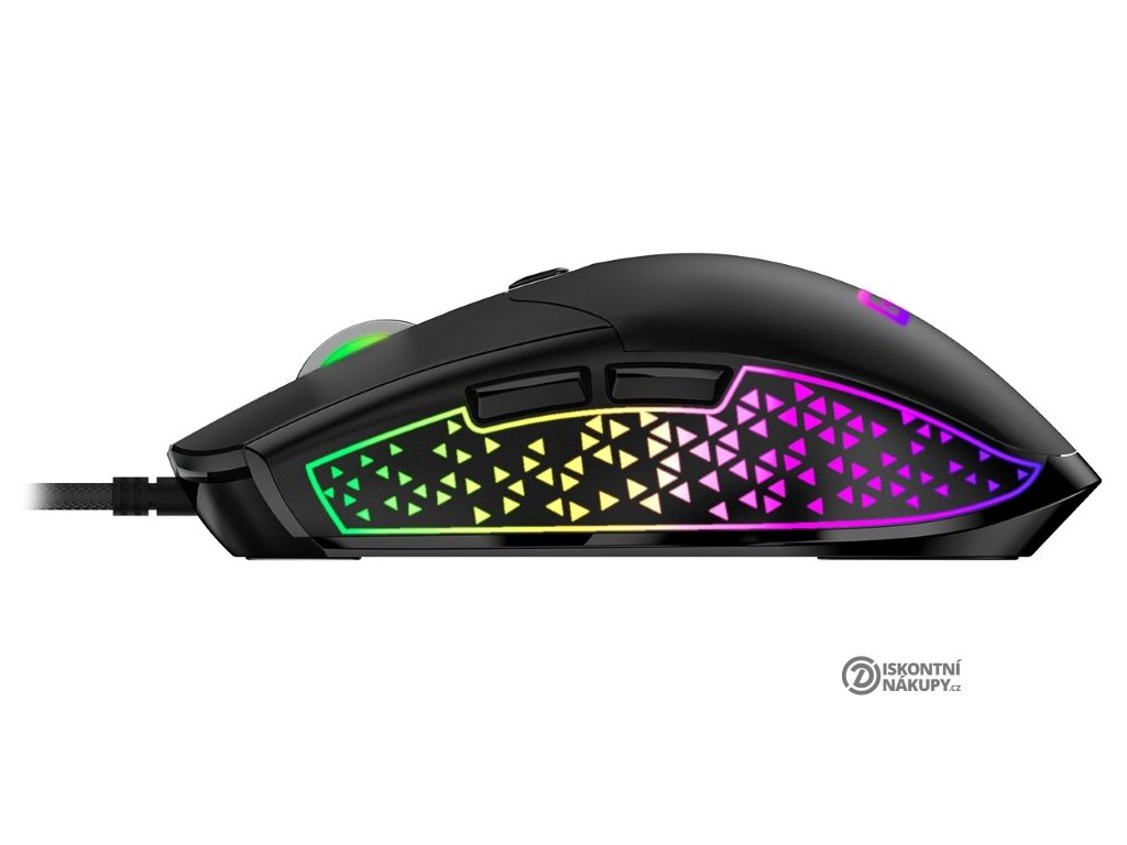 Herní myš disponující 6 tlačítky a vysoce přesným optickým senzorem s nastavitelným rozlišením v rozmezí 800 až 7200 DPI. Ergonomický herní design myši doplňuje RGB podsvícení. Pro připojení k počítači slouží 1,8 m dlouhý opletený kabel zakončený USB konektorem.