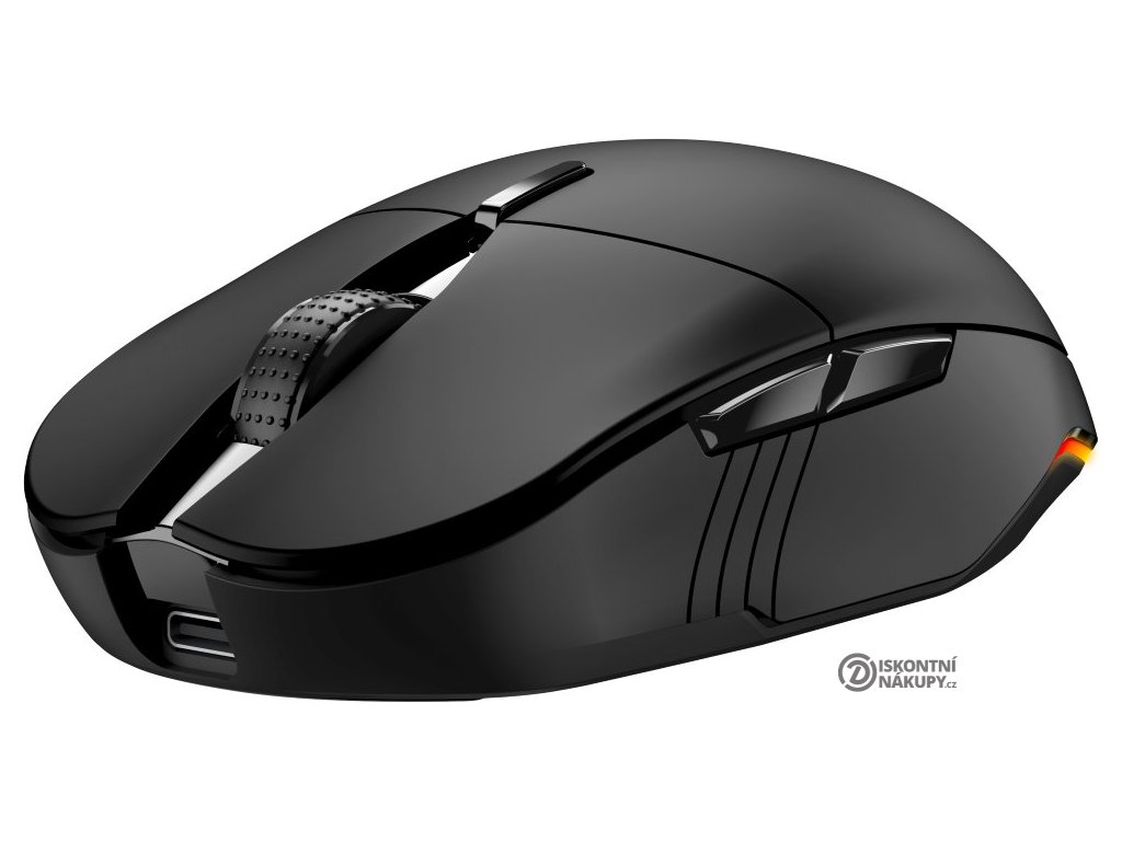 Bezdrátová herní myš v moderním provedení disponuje optickým senzorem s nastavitelným rozlišením až 3200 DPI. Připojení k počítači je realizováno bezdrátově skrze Bluetooth nebo miniaturní USB přijímač a rozhraní 2,4 GHz. Myš se dokáže připojit ke dvěma zařízením zároveň, mezi nimi pak můžete přepínat pomocí přepínače na spodní straně (BT režim + 2,4 GHz). USB přijímač lze pro snadné přenášení uschovat v těle myši. Stiskem dvou vybraných tlačítek současně lze vyvolat AI asistenta Microsoft Copilot nebo aktivovat hlasové zadávání (pouze ve Windows 11). Napájení zajišťuje vestavěná dobíjecí baterie s kapacitou 500 mAh, kterou lze nabíjet pomocí USB-C portu. Během nabíjení navíc myš zůstává funkční a vy tak můžete pokračovat v práci. Potěší také stylové sedmibarevné podsvícení.