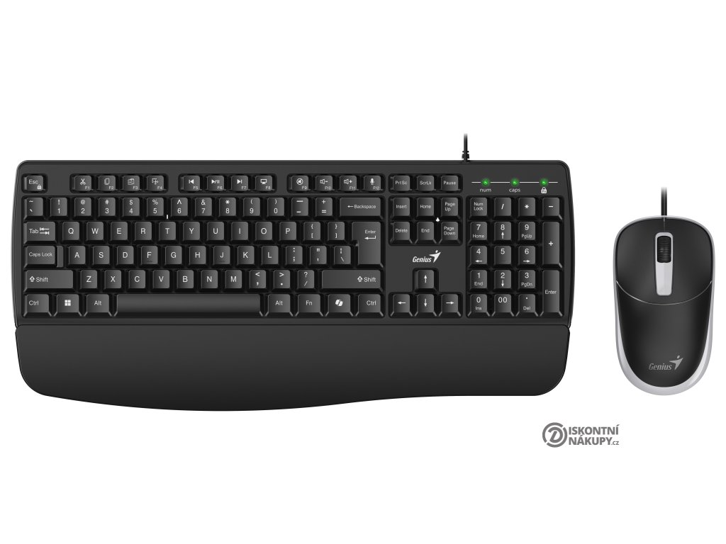Nechybí zkratkové klávesy pro základní úkony s texty, tabulkami nebo ovládání multimédií. Samozřejmostí je také přítomnost numerického bloku pro zadávání čísel. Konstrukce Spill-resistance chrání klávesnici v případě náhodného polití. Optická myš Genius s rozlišením 1200 DPI citlivě a přesně reaguje na instrukce při ovládání aplikací, surfování po internetu a dalších firemních činnostech. Připojení Plug & Play zajistí okamžité drátové připojení bez nutnosti instalace dalších ovladačů.