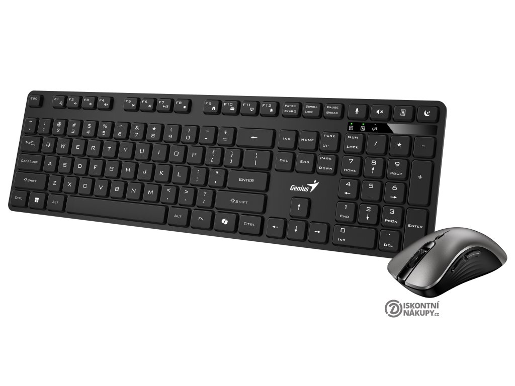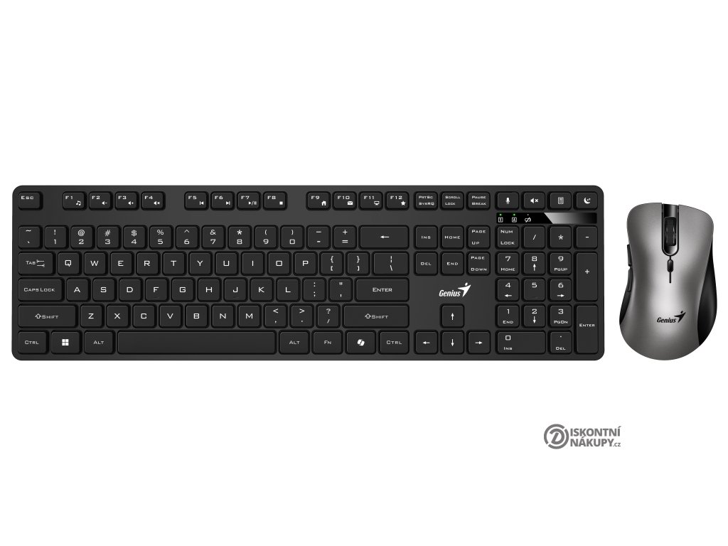 Bezdrátový set klávesnice a myši Genius KM-8216S, který je navržen pro každodenní práci na PC. Podporuje komfortní psaní, činnost s aplikacemi, tabulkami, dokumenty i surfování po internetu. Ve firemní kanceláři i domácnosti oceníte rovněž tichý chod. Bezdrátové připojení zajišťuje miniaturní USB přijímač, takže se můžete rozloučit s překážejícími kabely na stole.