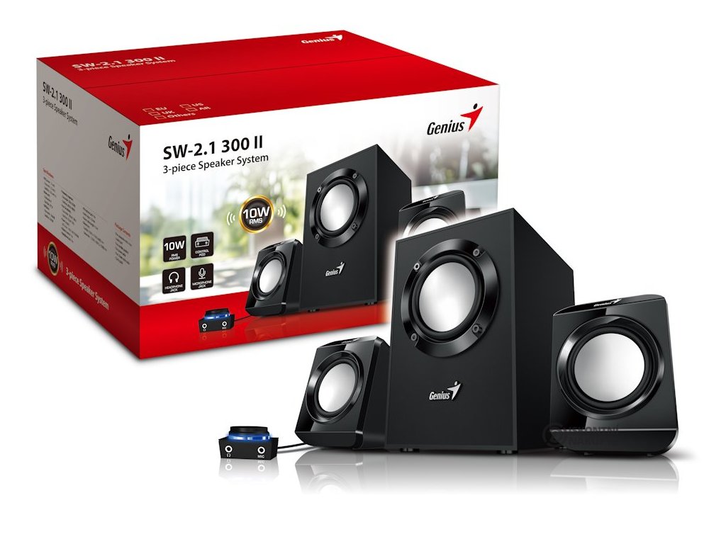 Systém reproduktorů Genius SW-2.1 300 Ver. II, který se postará o ozvučení filmů, videí, her a poslech hudby. Produkuje silný zvuk ocelkovém výkonu a podporuje intenzivní multimediální zážitky. Díky kompaktnímu provedení se snadno vměstná na pracovní plochu k počítači nebo notebooku.