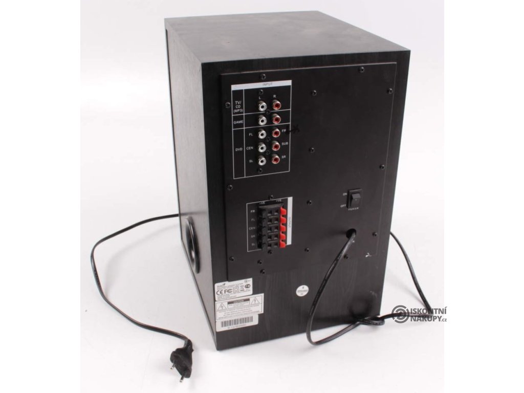 Elegantní systém reproduktorů v konfiguraci 5.1 nabízí celkový výkon 125 W. Sestava v dřevěném provedení tvořena kvalitním subwooferem s 6" reproduktorem, který disponuje integrovaným zesilovačem a výkonem 45 W. Subwoofer je doplněn pěti satelity, kdy každý disponuje výkonem 16 W. Součástí balení je napájecí adaptér 100-240 V.