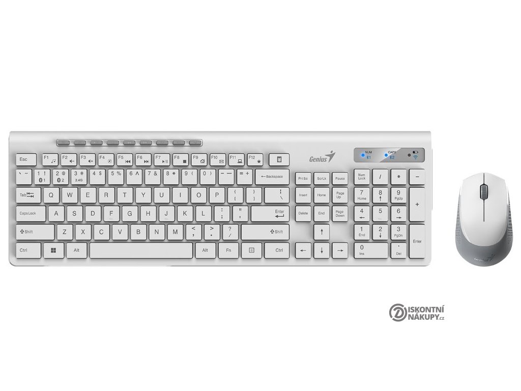 GENIUS SlimStar 8230/ Bezdrátový set Bluetooth + 2,4GHz/ připojení až 3 zařízení/ USB/ bílá/ CZ+SK layout 31340015403