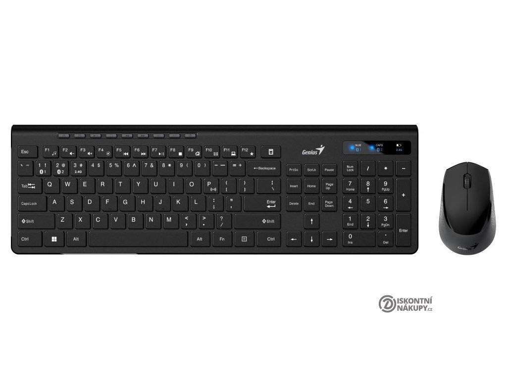 Bezdrátový set klávesnice a myši GENIUS Slimstar 8230 zvládne všechny každodenní úkoly ve firemní kanceláři nebo na home-office. Klávesnice podpoří rychlé a komfortní psaní i velmi náročných a dlouhých dokumentů. Za zmínku stojí také přítomnost multimediální kláves pro základní kontrolu hlasitosti zvuku nebo pozastavení přehrávání. Bezdrátová klávesnice Genius rovněž disponuje numerickým blokem pro zadávání číselných znaků. Bezdrátová myš Genius je vybavena optickým senzorem s rozlišením 1200 dpi, které umožňuje hladký a plynulý pohyb po pracovní ploše a tím přesné ovládání kurzoru. Bezdrátové připojení je realizováno skrze USB adaptér s 2,4GHz rozhraním a Bluetooth a umožní vám činnost až na třech zařízeních současně.