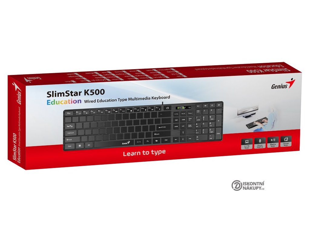GENIUS Slimstar K500 Education/ pro výuku psaní na stroji/ Drátová/ Copilot/ USB/ černá/ layout bez písmen 31310058400