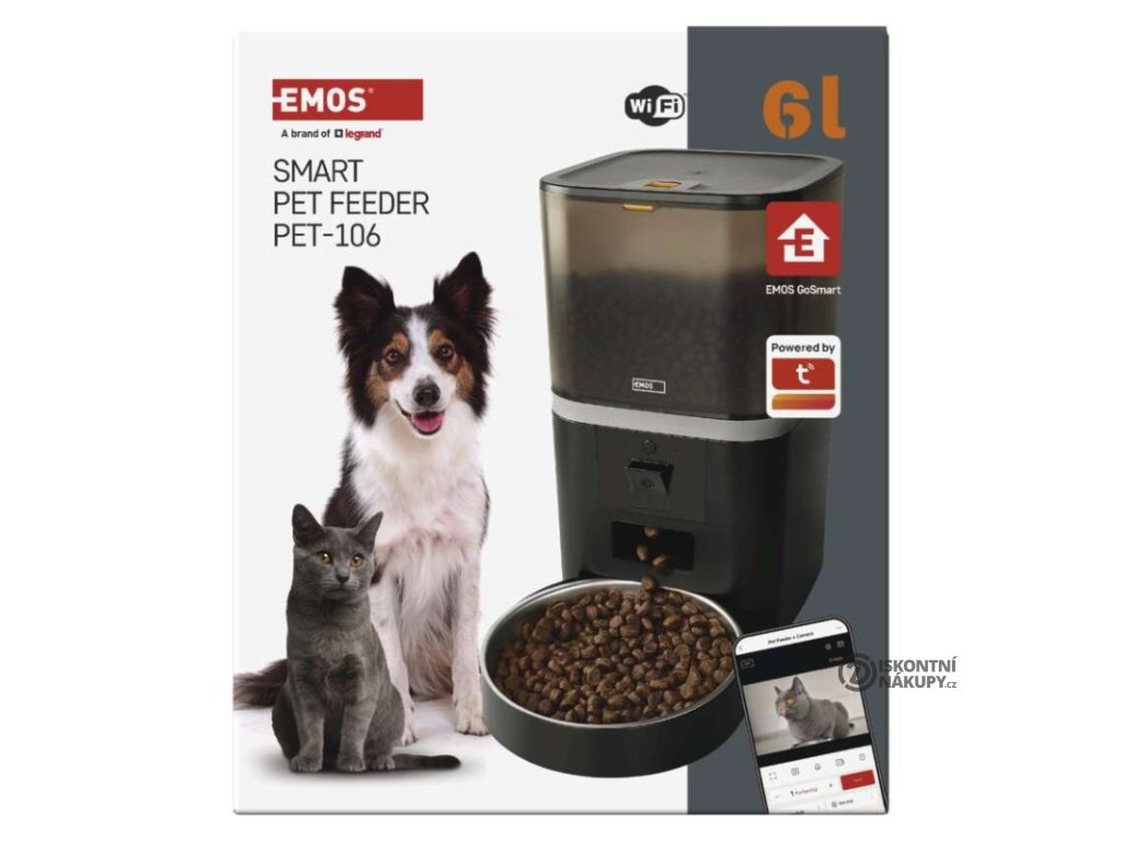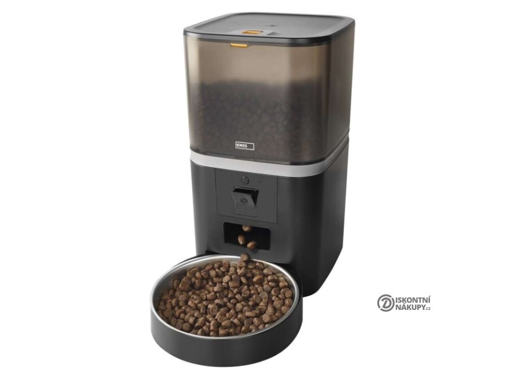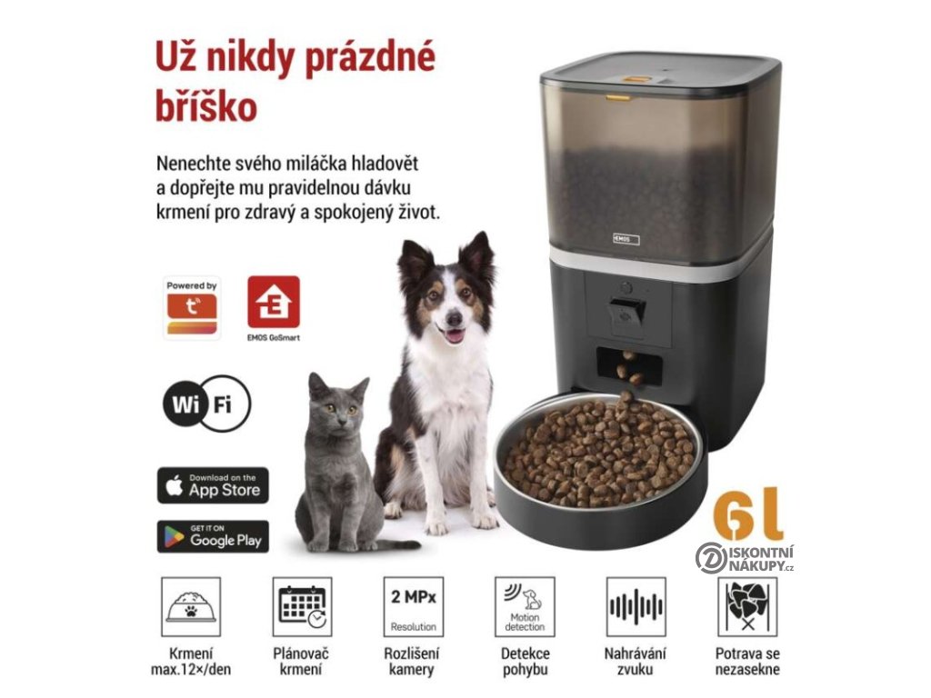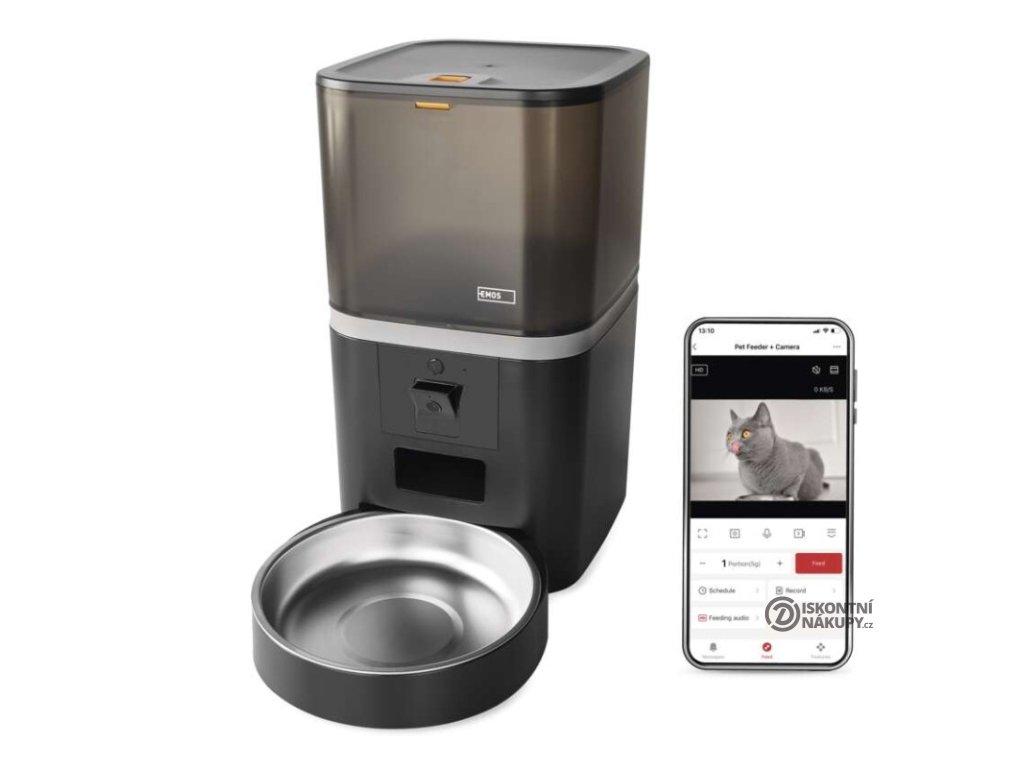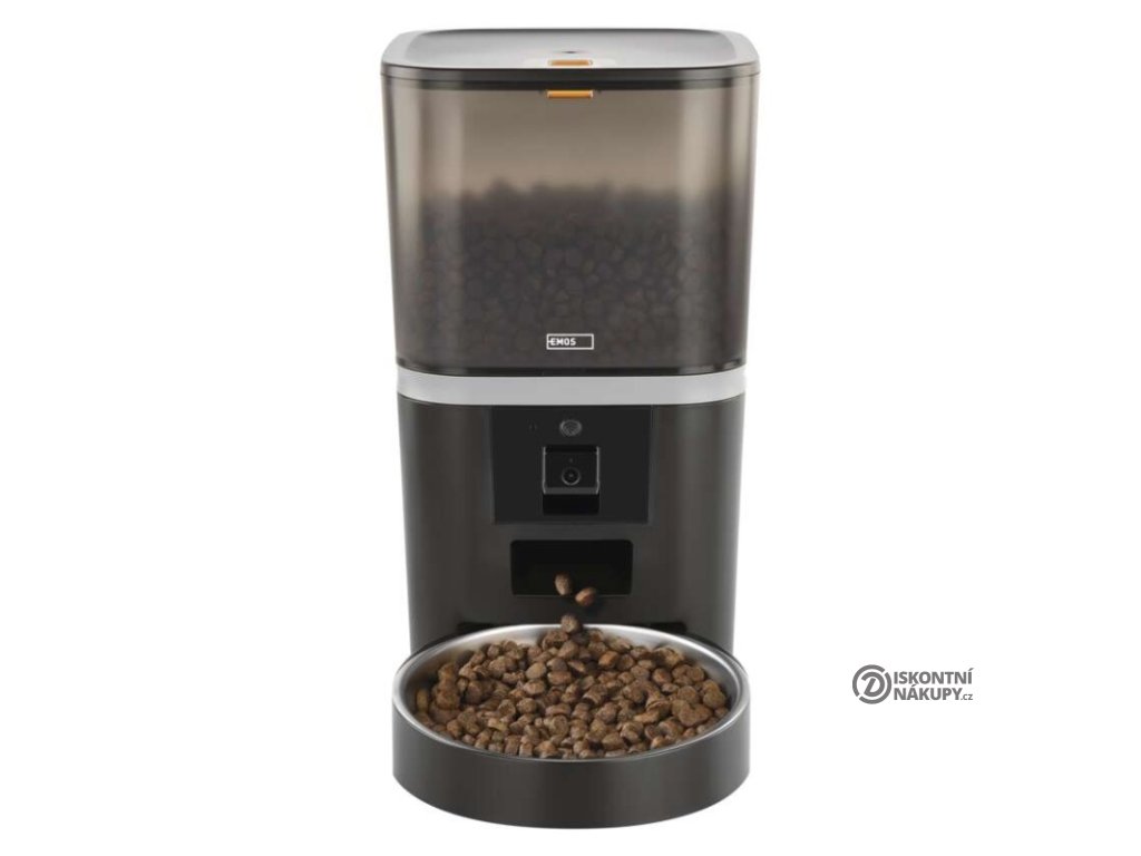 barva: černá|další funkce: vyjímatelná nerezová miska, polohovatelná kamera|detekce pohybu: ano|detekce zvuku: ne|doporučení: střední a větší plemena|funkce WebRTC: ano|hlasová komunikace: ano, obousměrná (Full-Duplex)|instalační materiál: –|IR CUT: ano|jazyky aplikace: EN, CZ, SK, PL, DE, HU, SI, FR, + 60 dalších jazyků|jedna porce: 5 g|kapacita: 6 l|kompatibilita: EMOS GoSmart, TUYA, LIDL, Smartlife, Otevřený systém|maximální úhel záběru kamery: 117°|napájení: 5 V/1 A / 4× 1,5 V typ AA|noční vidění: ano, max. 5 m|notifikace do mobilní aplikace: ano|obsah balení: krmítko, napájecí adaptér, přívodní kabel|ovládání hlasovými asistenty: ne|podporované OS: Android, iOS|přenosová frekvence: 2,4 GHz|prodejní obal: 1 ks, krabice|protokol: Wi-Fi|průměr granulí: 2–15 mm|řada: GoSmart|rozlišení kamery: 1 920 × 1 080|rozměr: 190 × 210 × 325 mm|typ produktu: chytré krmítko s kamerou|ukládání na cloud: ne|ukládání na SD kartu: ne|určení: vnitřní|vyvolání hovoru tlačítkem: ne|záruční doba: 2 roky|zdroj součástí balení: anoDoplňkové parametry