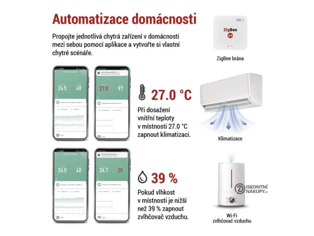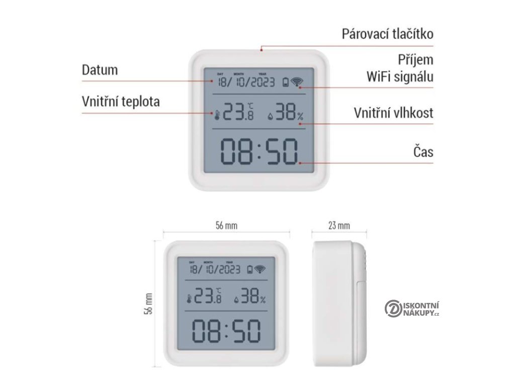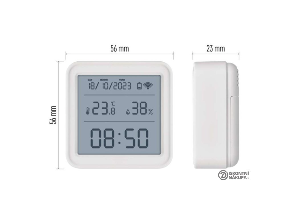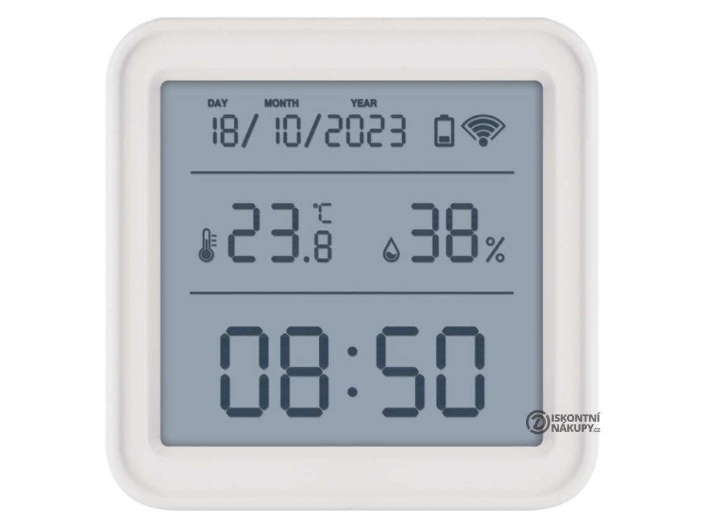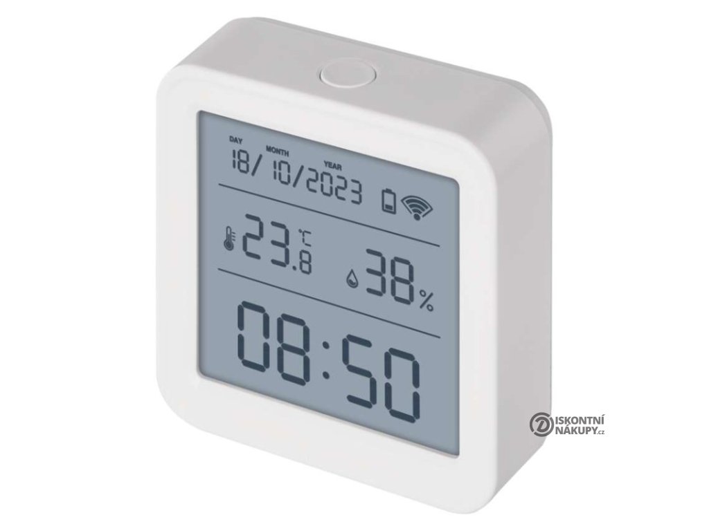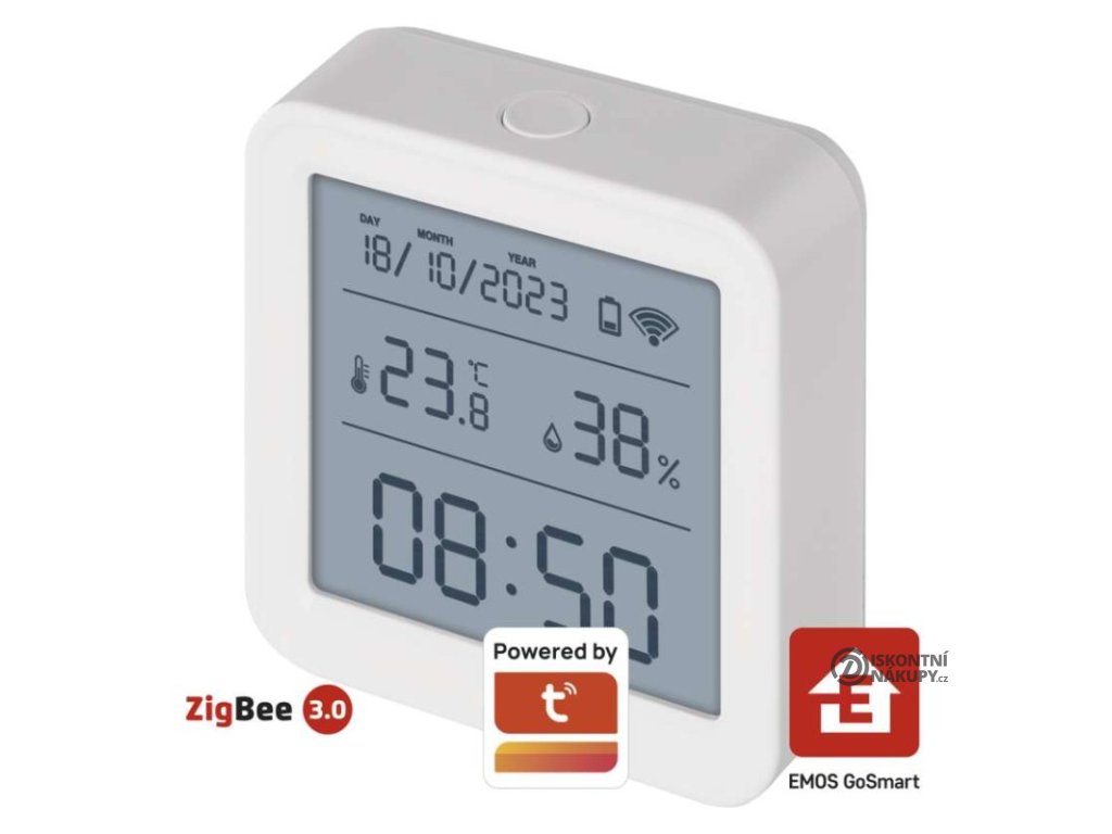 12/24 formát času: ano|barevný displej (black mask) podsvícený: ne|budík: ne|časová pásma: ne|další funkce: –|datum: ano|dosah ve volném prostoru: ne|drátová sonda k čidlu: ne|funkce stopky: ne|hlasová komunikace: –|hodiny: řízené wifi|instalační materiál: –|jazyky aplikace: EN, CZ, SK, PL, DE, HU, SI, FR, + 60 dalších jazyků|kalendář: ne|kompatibilita: EMOS GoSmart, TUYA, LIDL, Smartlife, Otevřený systém|LED podsvícení displeje: ano|magnet na připevnění: ne|min. a max. teplota: ano|možné další čidlo: ne|možnost nastavení jednotky teploty: ano|možnost pověšení na zeď: ano|napájení čidla: ne|napájení stanice: 3× 1,5 V AAA (nejsou součástí balení)|notifikace do mobilní aplikace: ano|odpočet času max. od: ne|opakované buzení: ne|ovládání hlasovými asistenty: ano (Amazon Alexa, Google Assistant)|paměť poslední hodnoty: ne|podporované OS: Android, iOS|přenosová frekvence: ne|prodejní obal: 1 ks, krabička|protokol: Zigbee 3.0|provedení teploměru: bezdrátové – smart|rozměr čidla: ne|rozměr hlavní jednotky: 56 × 23 × 56 mm|síťový adaptér: ne|teplotní index: ne|teplotní výstraha: ano|trend teploty: ne|trend tlaku: ne|trvalé podsvícení: ne|velikost displeje: 42 × 40 mm|venkovní teplota: ne|venkovní vlhkost: ne|vnitřní teplota: -10 °C až +60 °C, rozlišení 0,1 °C|vnitřní vlhkost: 0 % až 99 % RV, rozlišení 1 %Popis produktu