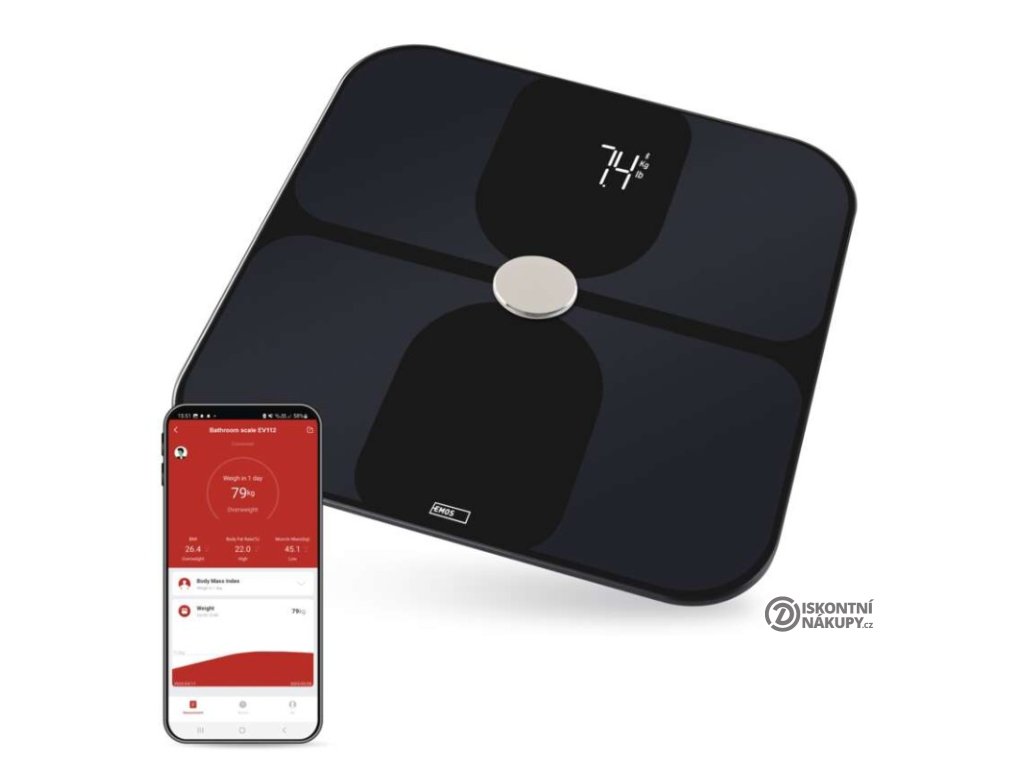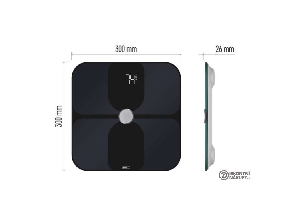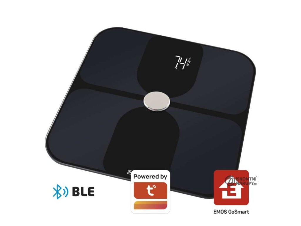 automatické vypnutí: ano|barva: černá|Bluetooth: ano|BMI index – měření tuku, vody a svalové hmoty: ano|další funkce: –|funkce dovažování: ne|indikace slabých baterií: ano|indikátor přetížení: ano|jazyky aplikace: EN, CZ, SK, PL, DE, HU, SI, FR, + 60 dalších jazyků|jednotky váhy: kg, lb|kompatibilita: EMOS GoSmart, TUYA, LIDL, Smartlife, Otevřený systém|LCD displej: ano|max. zátěž: 180 kg|napájení: 3× 1,5 V AAA (součástí balení)|notifikace do mobilní aplikace: ano|ovládání hlasovými asistenty: ne|paměť: max. 10 osob|podporované OS: Android, iOS|podsvícený displej: ano|povrch váhy: ITO tvrzené sklo|přenosová frekvence: 2,4 GHz|přesnost vážení: 100 g|prodejní obal: 1 ks, krabice|produkt: osobní váha|protokol: Bluetooth 5.0|rozměr: 26 × 300 × 300 mmPopis produktu