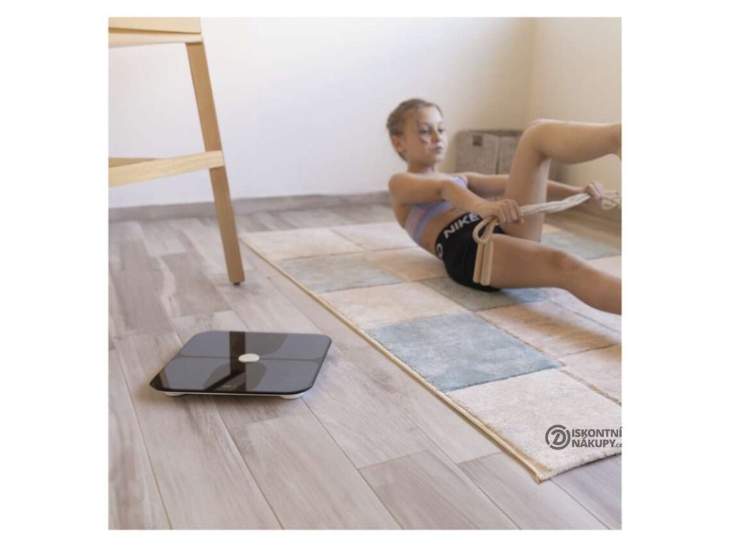Digitální osobní váha s výpočtem BMI indexu (množství tuku, vody a svalové hmoty v těle). Kompatibilní s mobilní aplikací TUYA (iPhone, Android). Paměť pro 8 uživatelů.