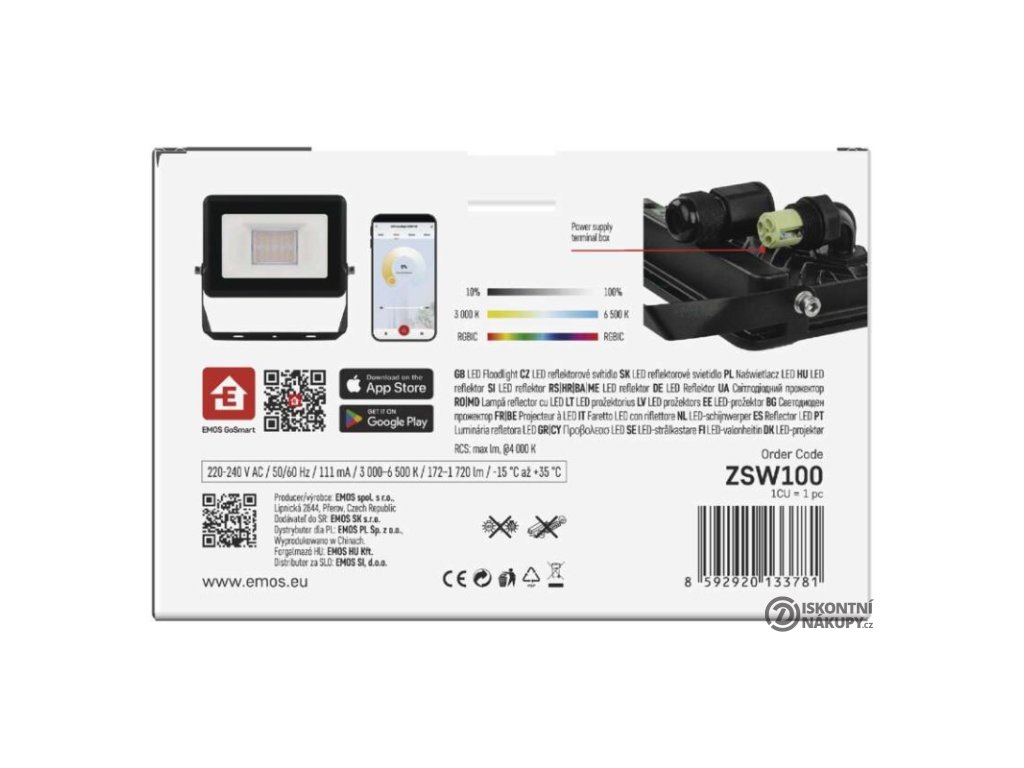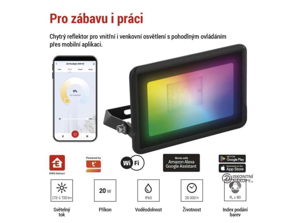 GOSMART LED reflektor 20W, 1720 lm, RGB+CCT, IP65