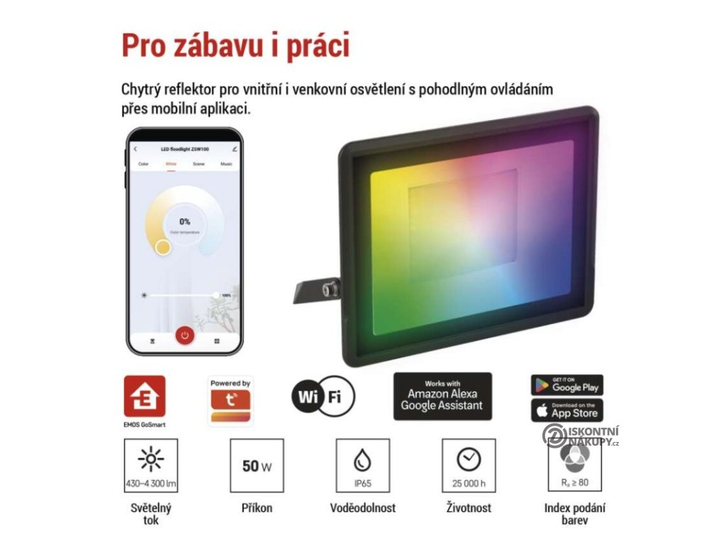 GOSMART LED reflektor 50W, 4300 lm, RGB+CCT, IP65