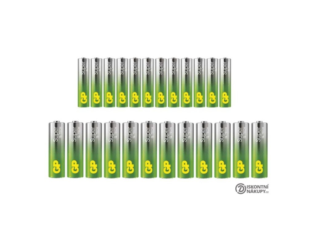 chemické složení: alkalické|hmotnost: 462 g|kapacita: neuvádí se|kategorie/řada: Super Alkaline|max. skladovatelnost: 10 let|možnost nabíjení: ne|napětí: 1,5 V|počet nabíjecích cyklů: nenabíjecí|prodejní obal: 12 ks AA+12 ks AAA + LED řetěz, blistr|provozní teplota: -18 °C až +50 °C|rozměr: 168 × 192 × 32 mm|typ: LR6 (tužka, AA)/LR03 (mikro., AAA)|velikost baterie: AA, AAA|značka: GPDoplňkové parametry