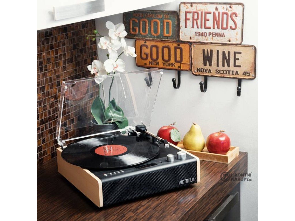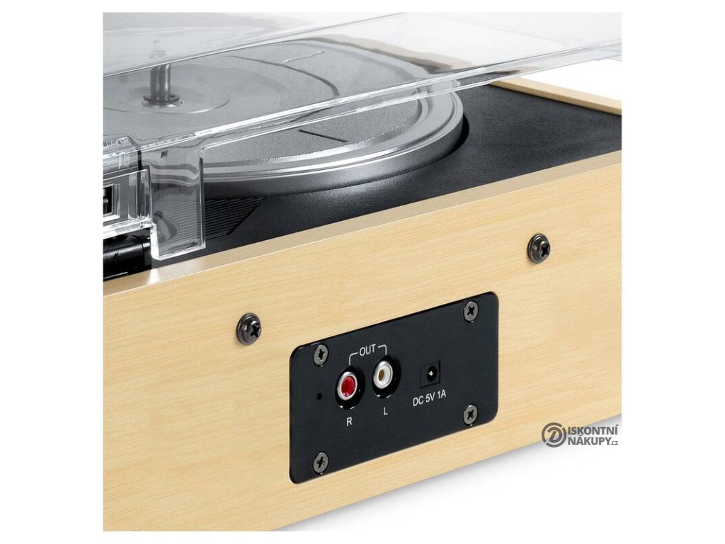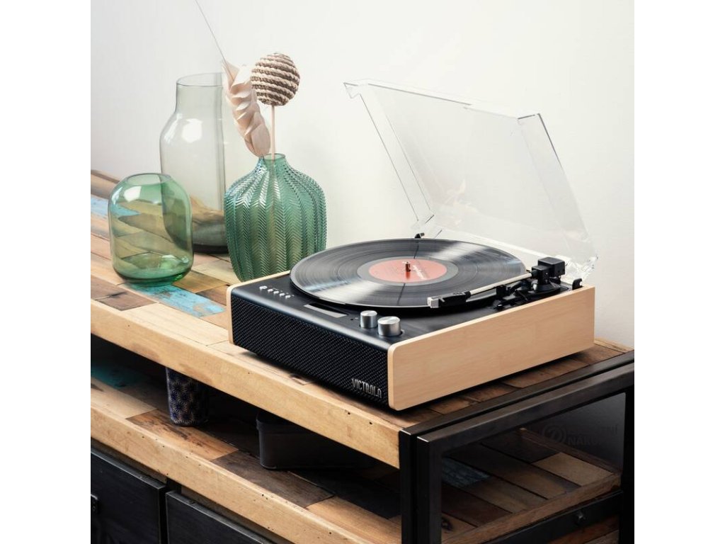 Přehrávač podporuje tři rychlosti (33 1/3, 45 a 78 ot./min) a vybaven je také vlastními reproduktory. Velkou předností je v jeho případě podpora Bluetooth pro vstup i výstup, což znamená, že k němu můžete připojit externí bezdrátové reproduktory, stejně jako streamovat hudbu z mobilů, tabletů atp. Nechybí ani port pro sluchátka zajišťující diskrétní poslech hudby nebo RCA výstupy pro připojení k Hi-Fi systémům.