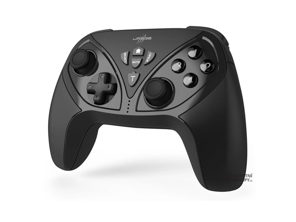 Hama uRage Vendetta 300 UnleashedErgonomický bezdrátový gamepad nabízí díky duálním vibracím realistický zážitek ze hry. K dispozici jsou 2 spouště, 2 horní tlačítka, 2 analogové ovladače s funkcí tlačítka, precizní 8směrový ovladač a tlačítka select, start, auto a home. Na zadní straně disponuje čtyřmi dodatečnými tlačítky s možností individuálního nastavení. K dispozici je také možnost přepínání mezi analogovým a digitálním režimem. Výdrž je díky integrované baterii cca 15 hodin. K nabíjení slouží USB-C konektor.