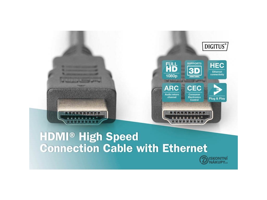 Digitus HDMI High Speed + Ethernet připojovací kabel, 2xstíněný, 3m